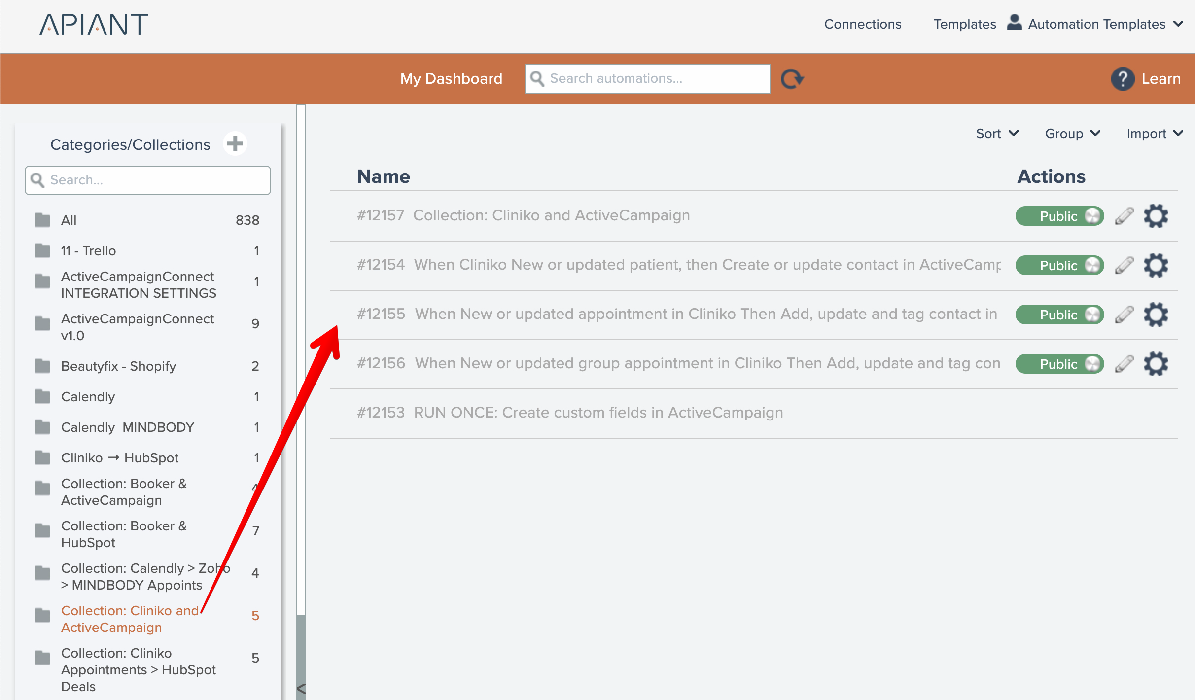 Then place the automations comprising the collection into the folder: