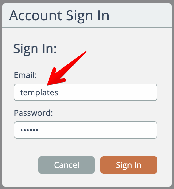 Anyone having the password can sign in to the templates account directly: