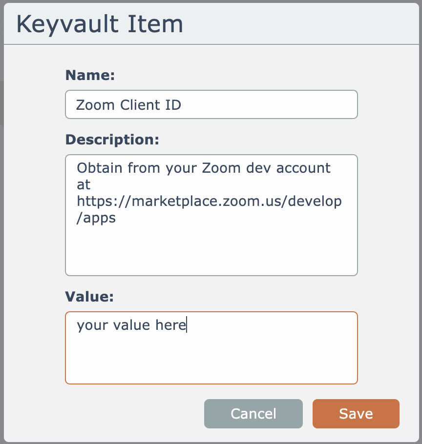 The most common use of the Keyvault is to store needed API credentials like OAuth client ids and secrets needed for app connection assemblies: