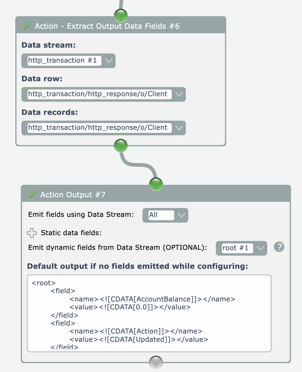 Similar to the Action module, output fields can either be statically typed into the module or they can be determined dynamically.