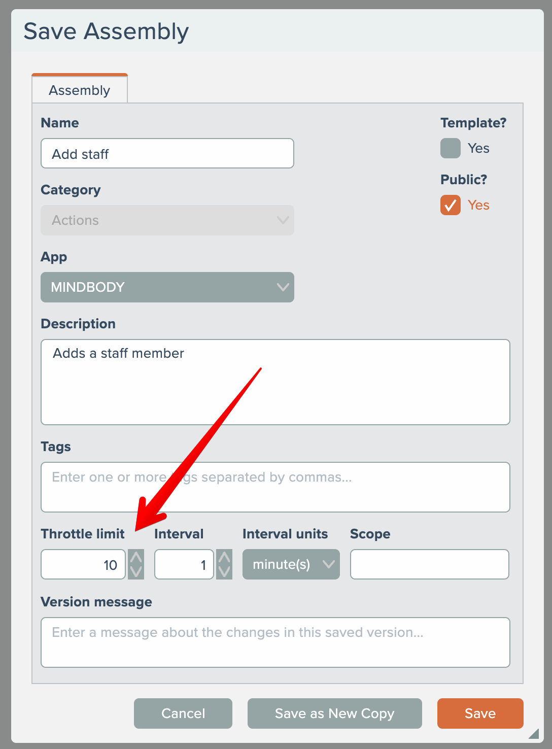 Actions can be configured with a throttle to enforce API rate limits. An action's thottle is defined when it is saved: