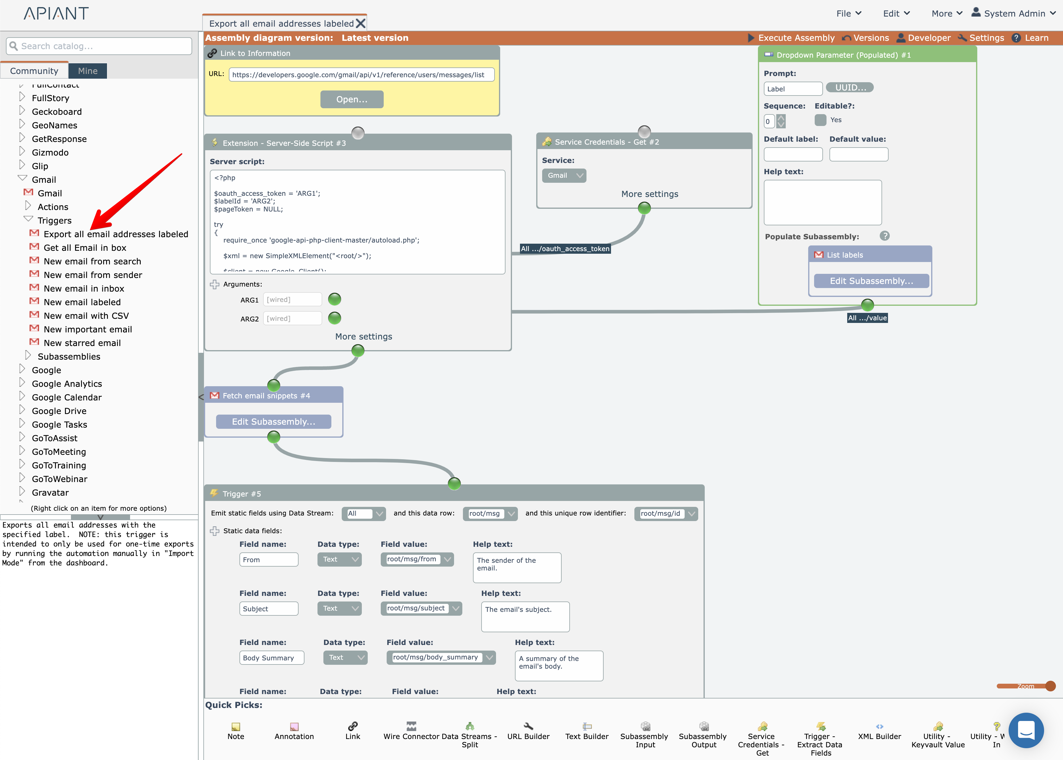 Export triggers are denoted by using “Export” as the first word in the trigger's name.
