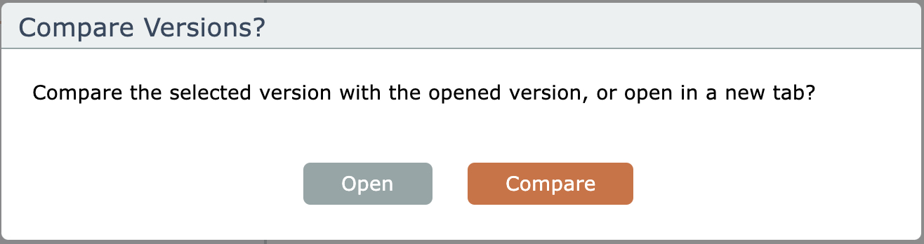 Clicking a saved version will present the option to either open the version or to compare it with the currently opened assembly version: