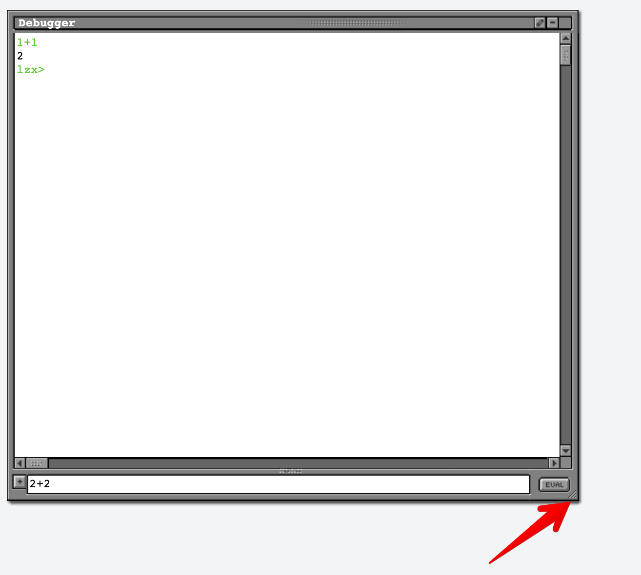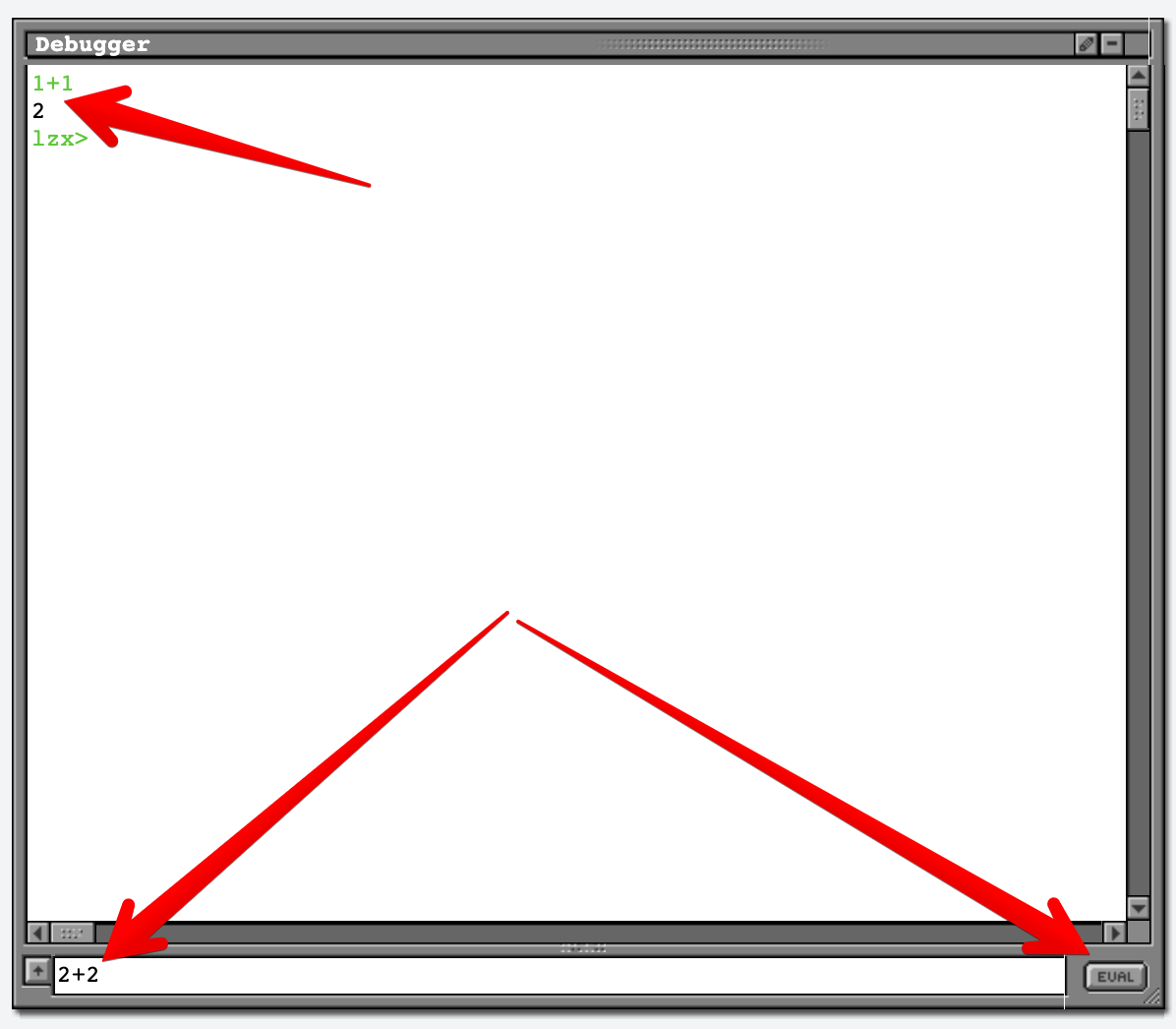 The debug window can be used to evaluate JavaScript expressions.