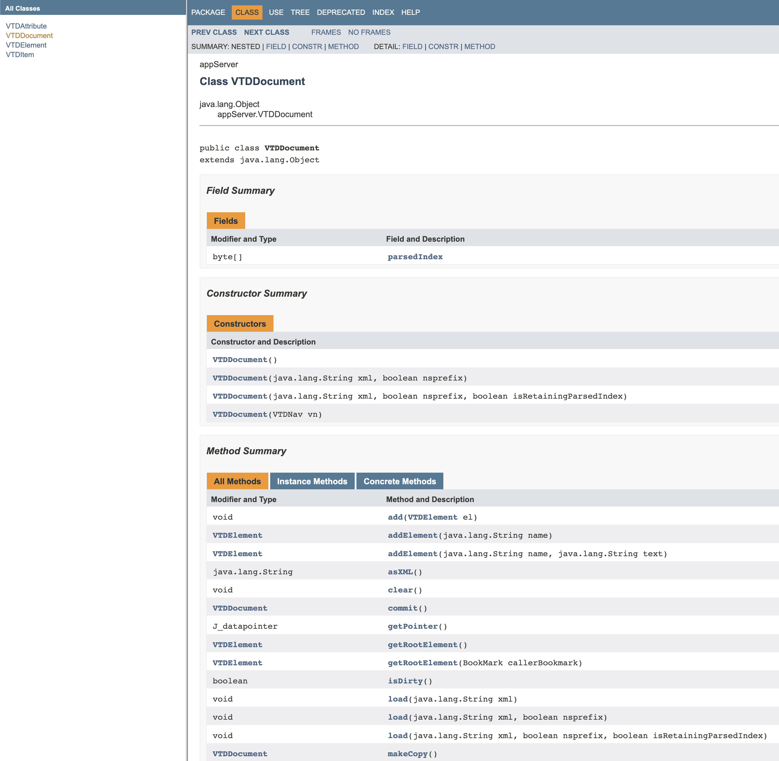 Within the inlined Java JSP code, the 3rd-party VTD-XML (virtual token descriptor) parser is used to work with XML.