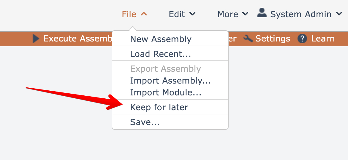 Learn how to make further edits to a previously saved assembly without creating a new version. Discover the "Keep for Later" option in the File menu, exclusively designed for modified previously saved assemblies. Your edits will be saved as an autosave co