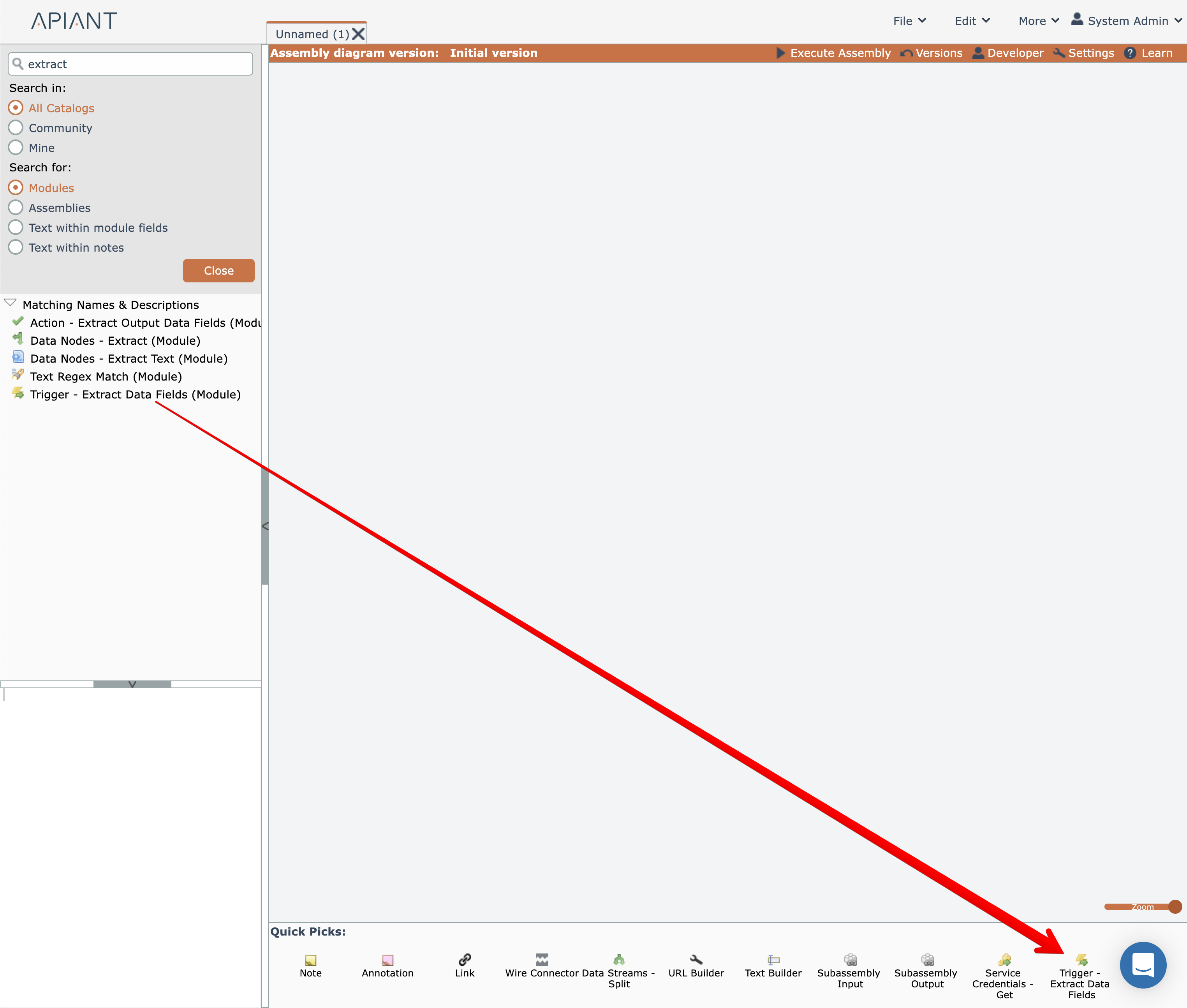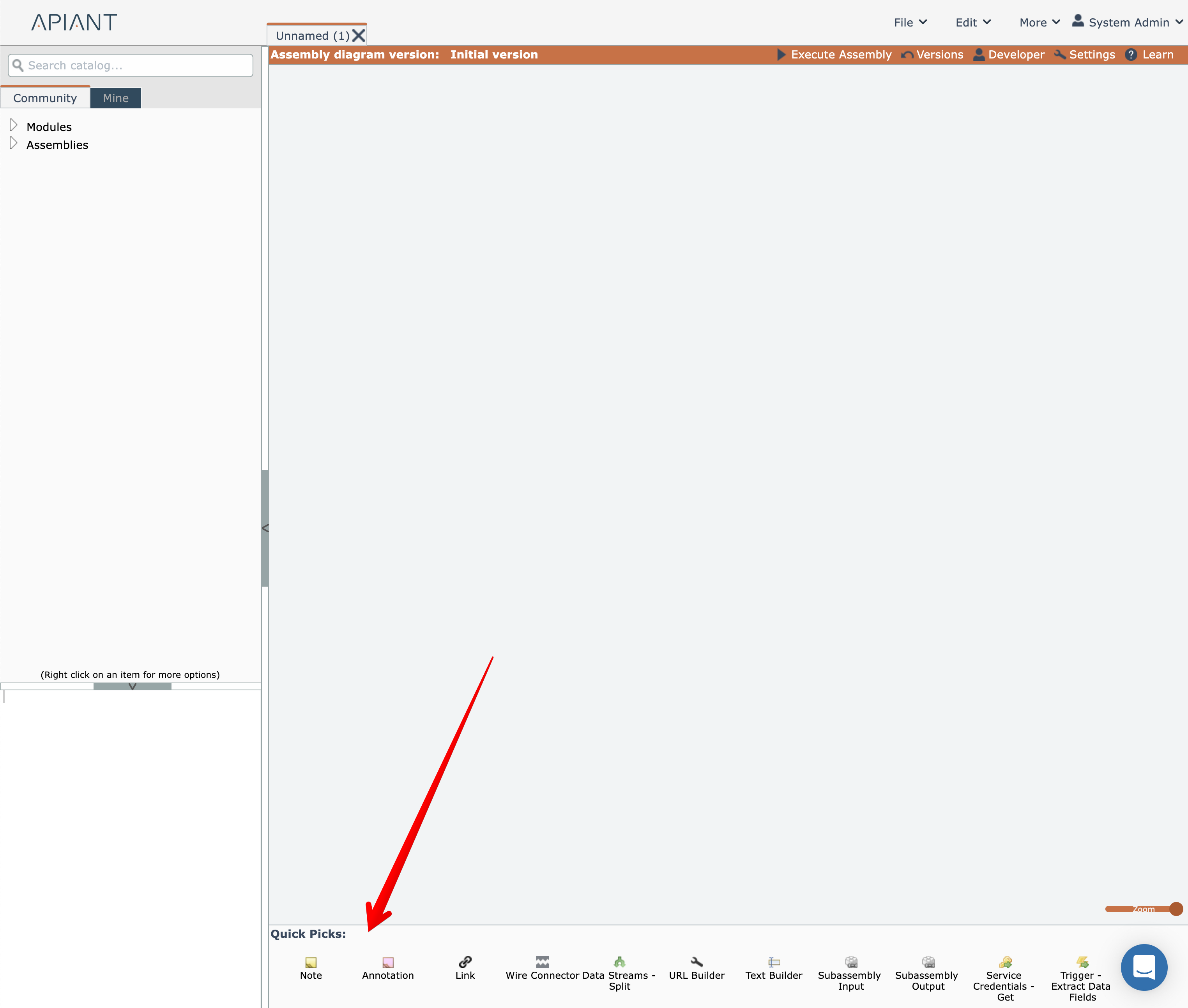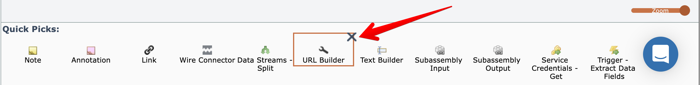 Once an item is placed into the Quick Picks tray, it can be dragged from the tray and added to the diagram.