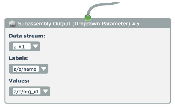 The subassembly must use a specialized version of the Subassembly Output module, called Subassembly Output (Dropdown Parameter):