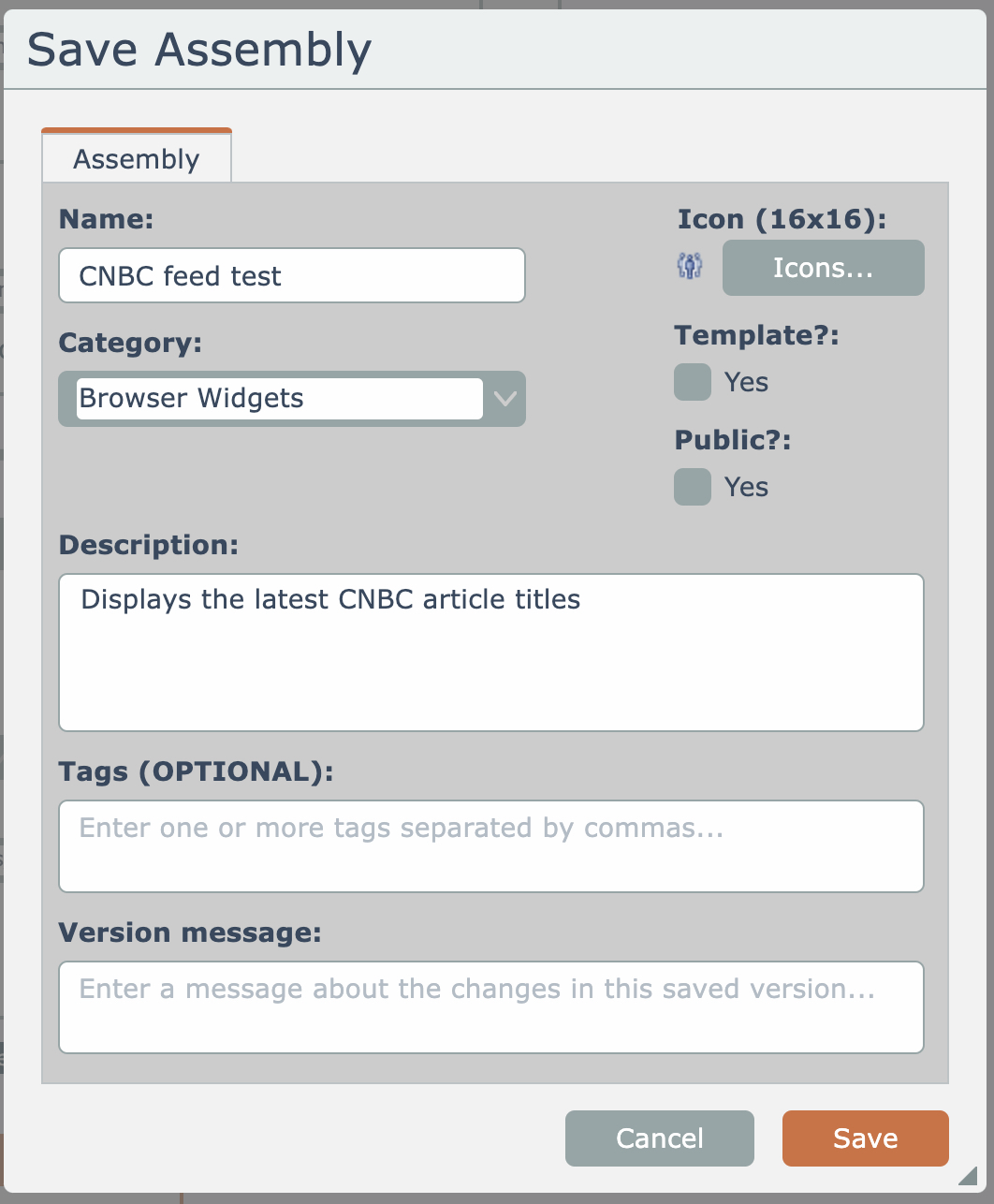Learn how to build a basic assembly and create a widget that shows the latest article titles from the CNBC news feed. This tutorial provides step-by-step instructions and screenshots on fetching XML data, using modules like HTTP Transaction and HTML Rende