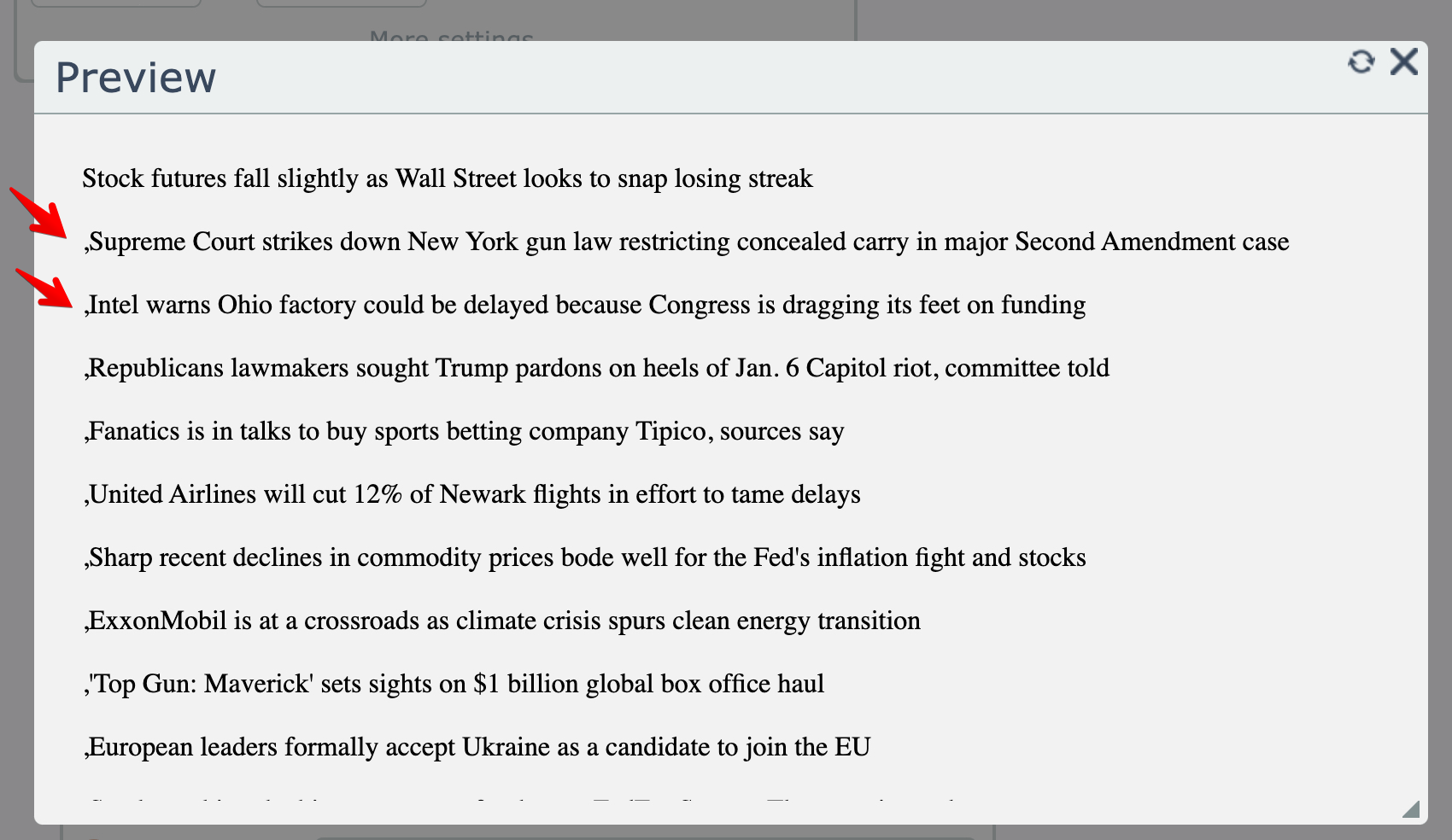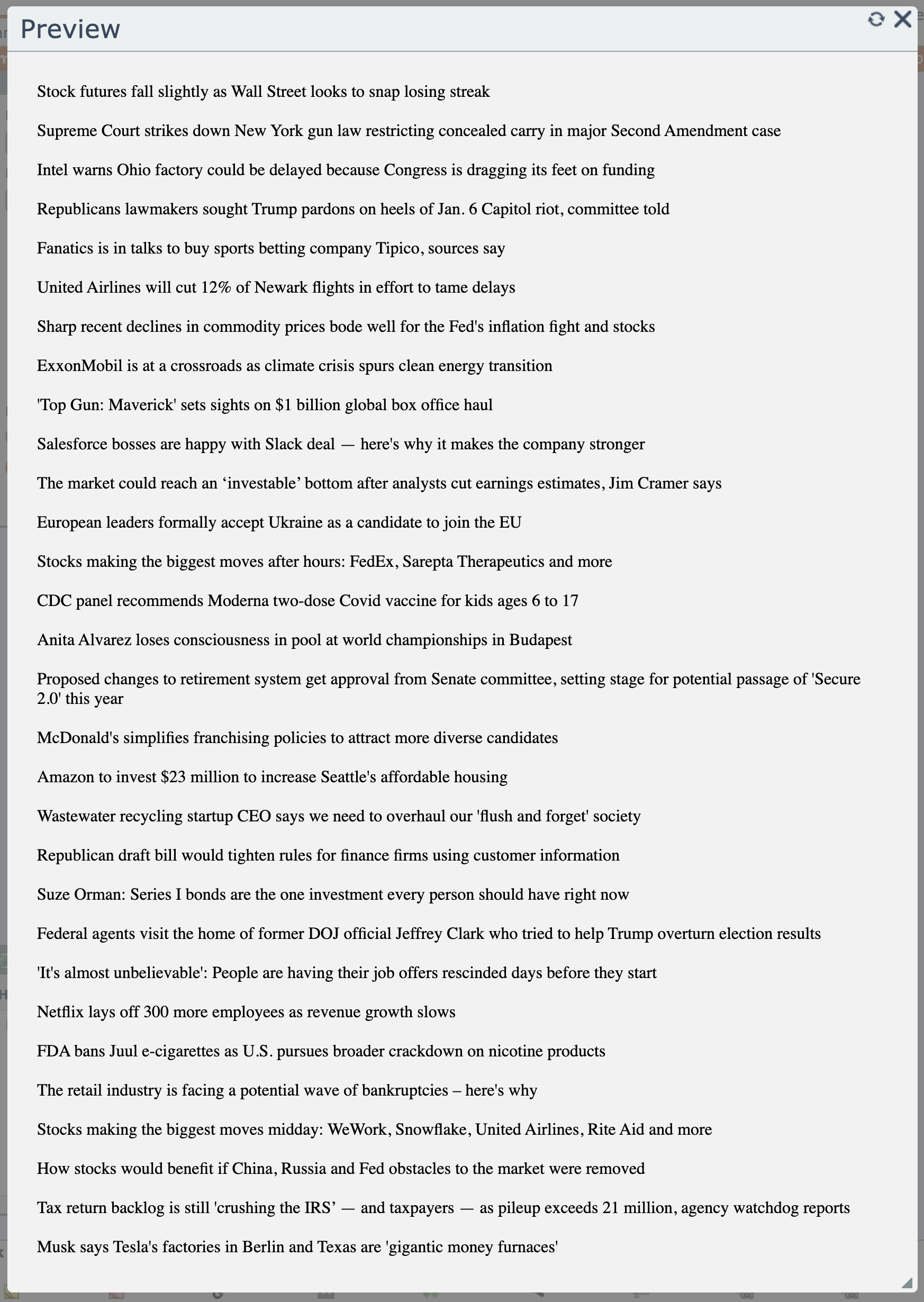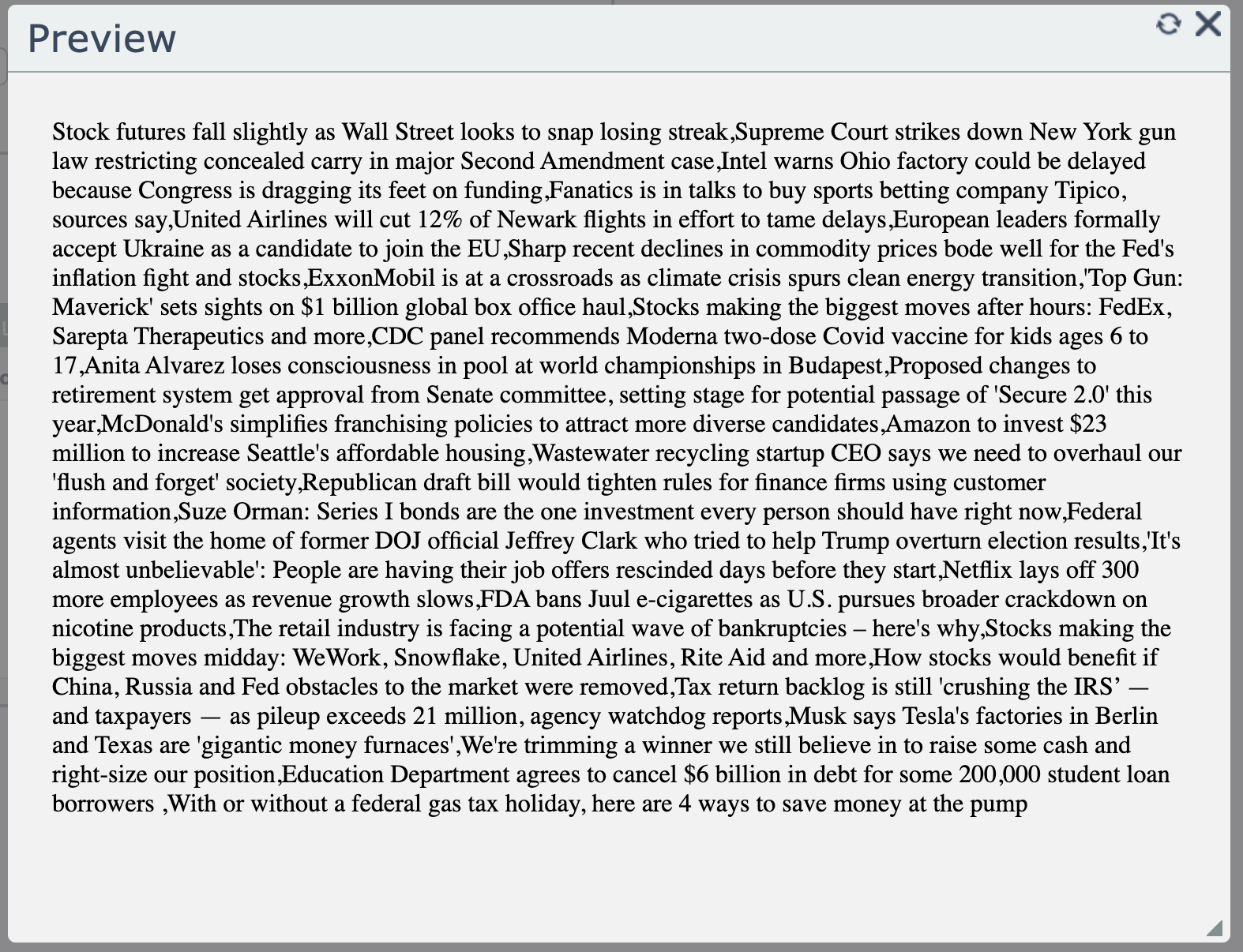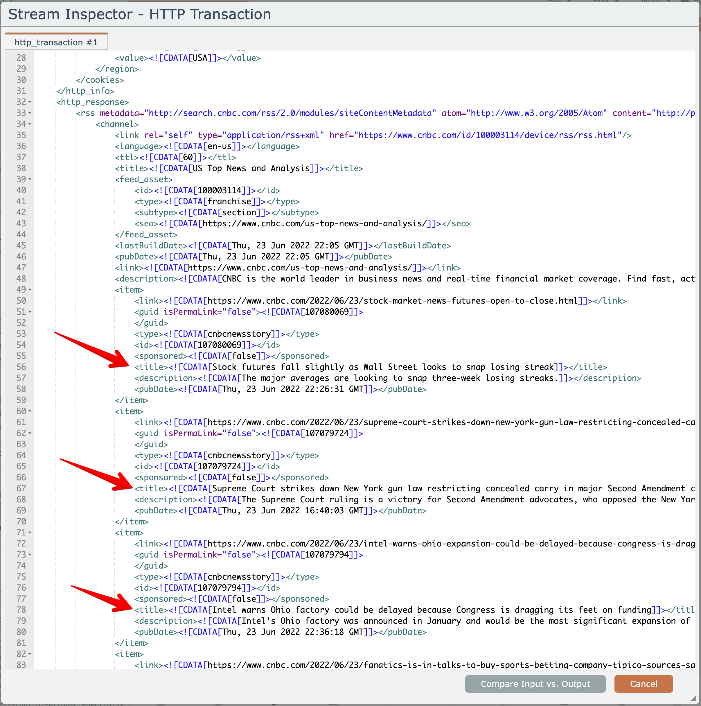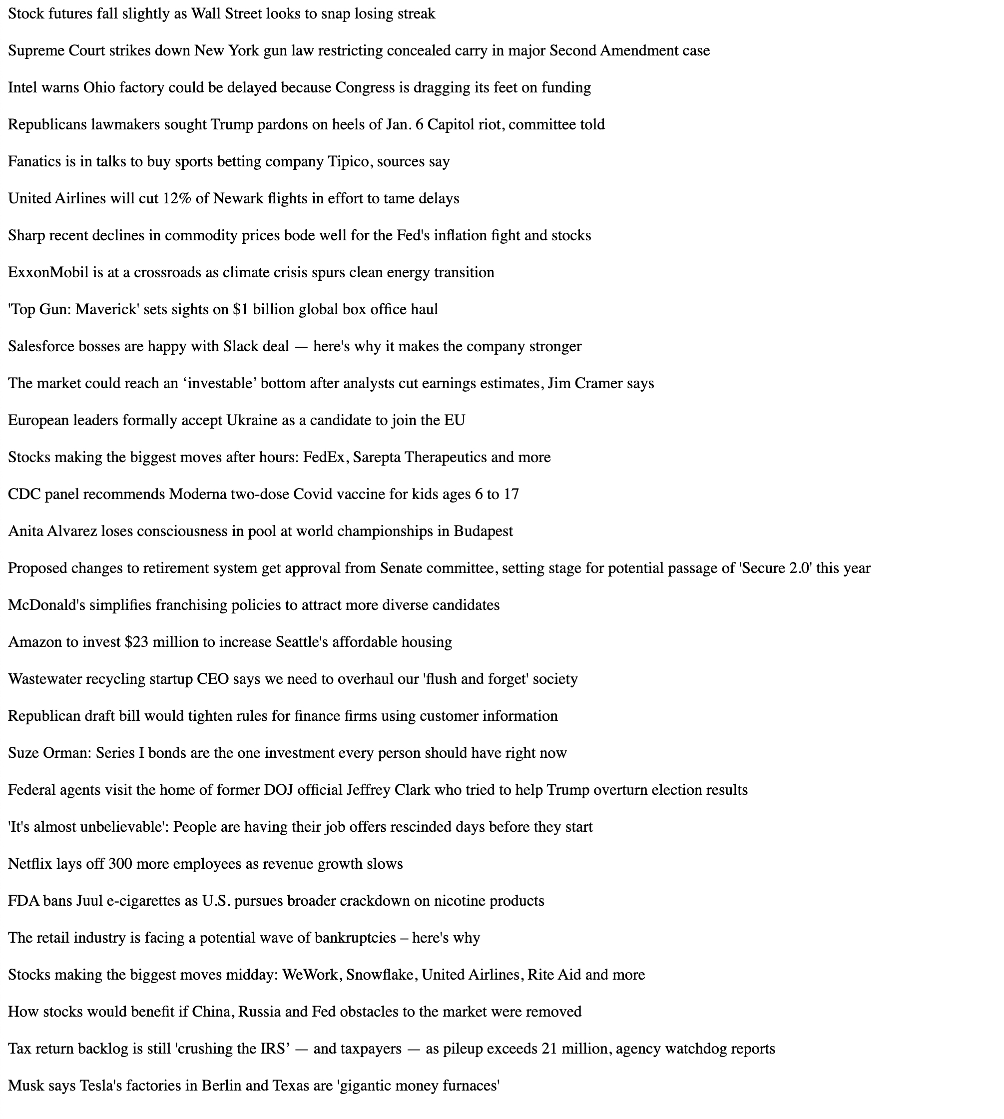 You can now examine the full contents of the data that was fetched from CNBC. Observe that there are article titles: