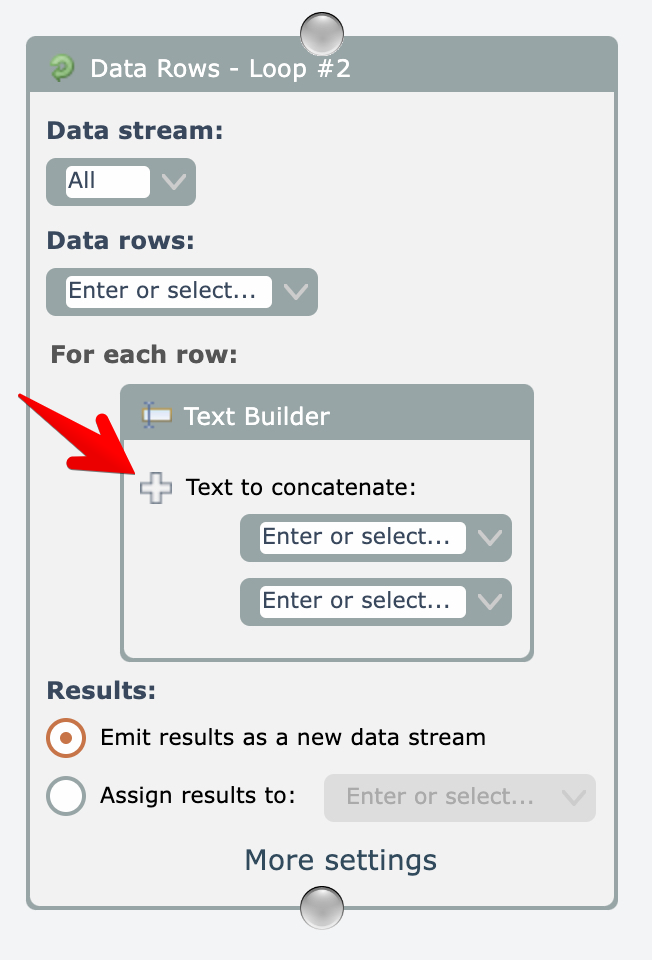 Now double-click on the Loop module again. Since the data rows is now configured, there will be no error and the Text Builder module will be able to be configured.