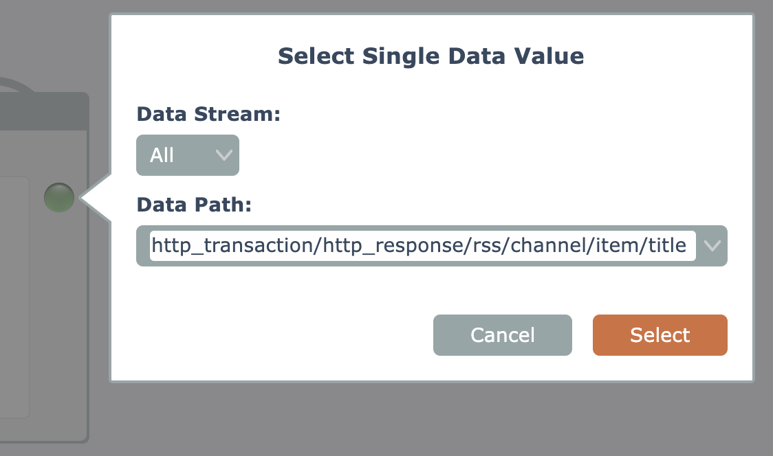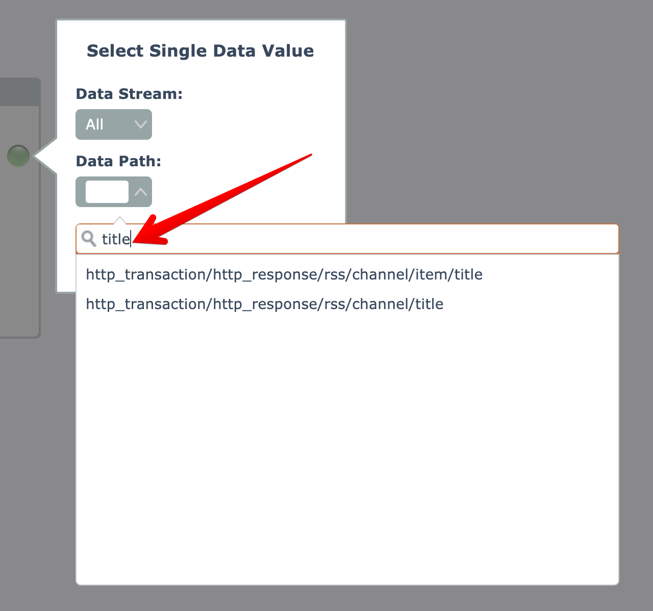 The editor recognizes the mismatch and knows that a text value needs to be selected from the Data Stream XML. So it is asking you to select an XPath to the text.