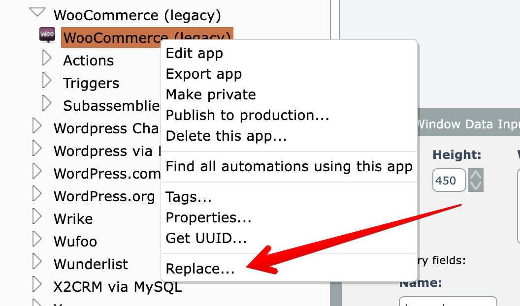 Then right-click on the destination assembly in the catalog and choose the Replace option: