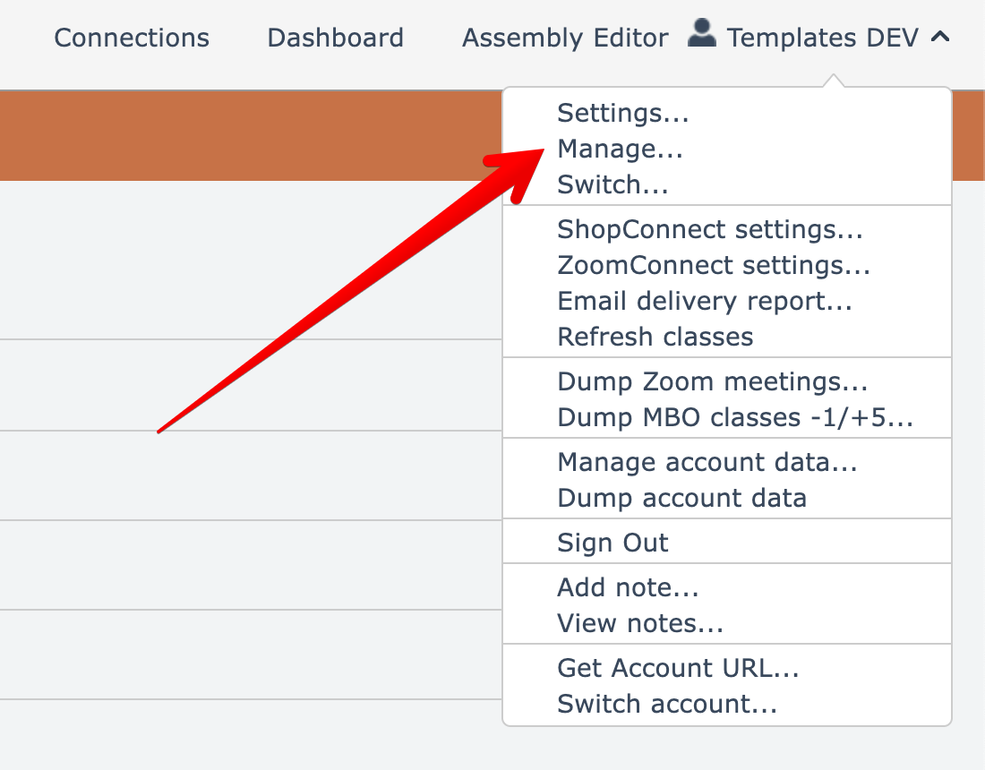To configure multi-factor auth, open the Manage account menu option found under your account name menu at the top right: