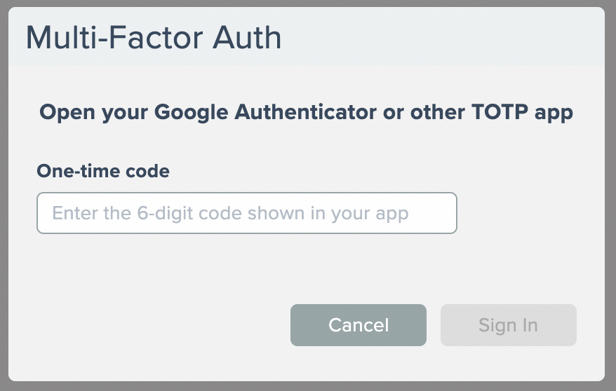 The system implements TOTP (time-based one-time password) authentication, where a one-time password generated by a TOTP phone app (typically Google Authenticator) must be entered during sign-in after entering a valid email and password to the account.