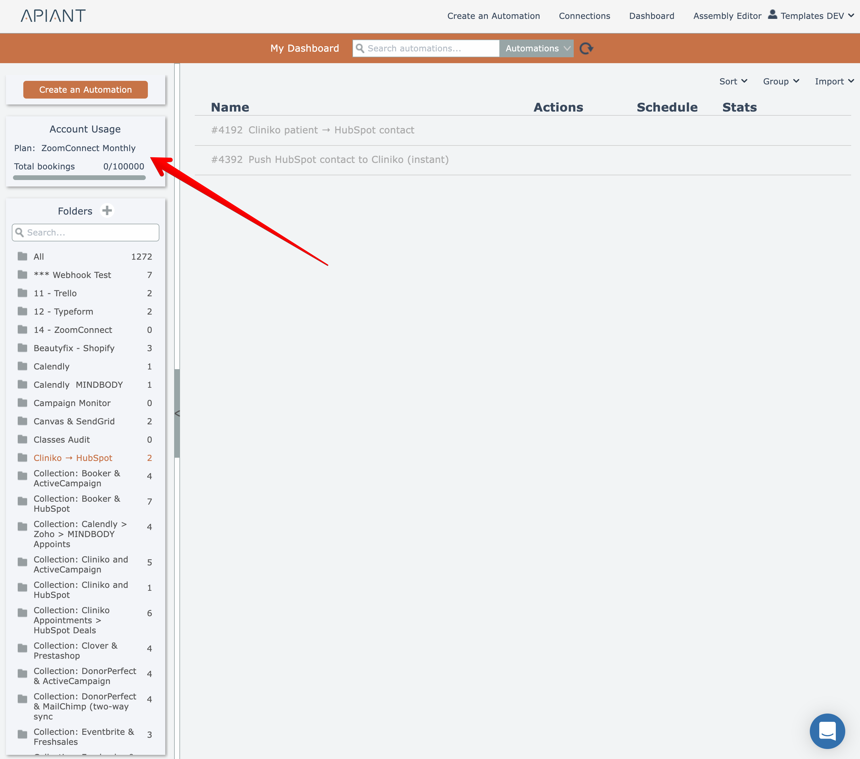 This document explains how subscription plans are showcased on the dashboard, with usage limits resetting monthly. If system usage surpasses certain percentages, email alerts are triggered, and at 100% usage, automations halt. Stay informed about plan det