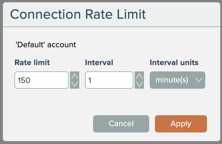 In the above example, the system will make no more than 150 API calls per minute for the connection.
