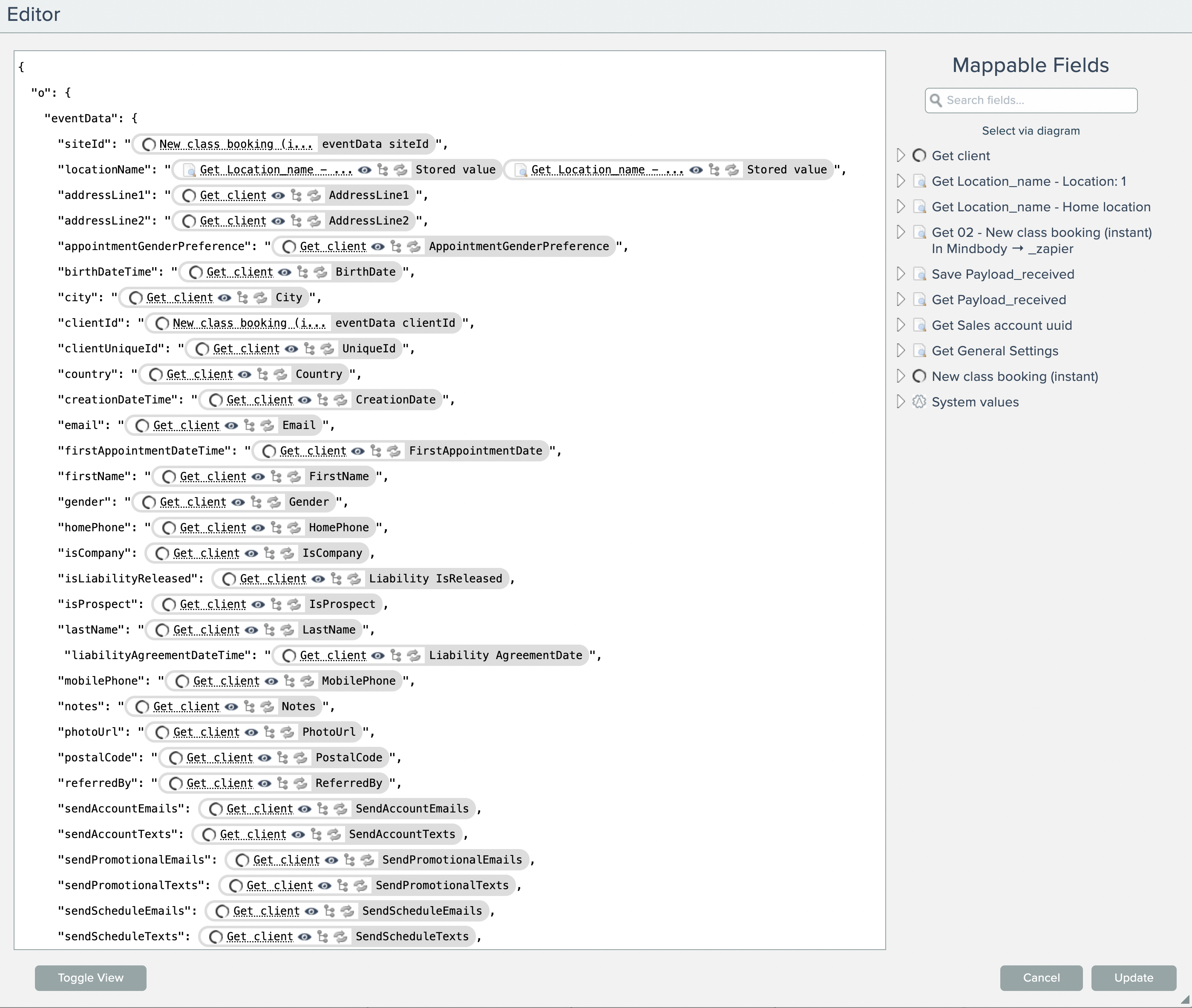 A full-screen editor will appear, with mappable fields accessible on the right side: