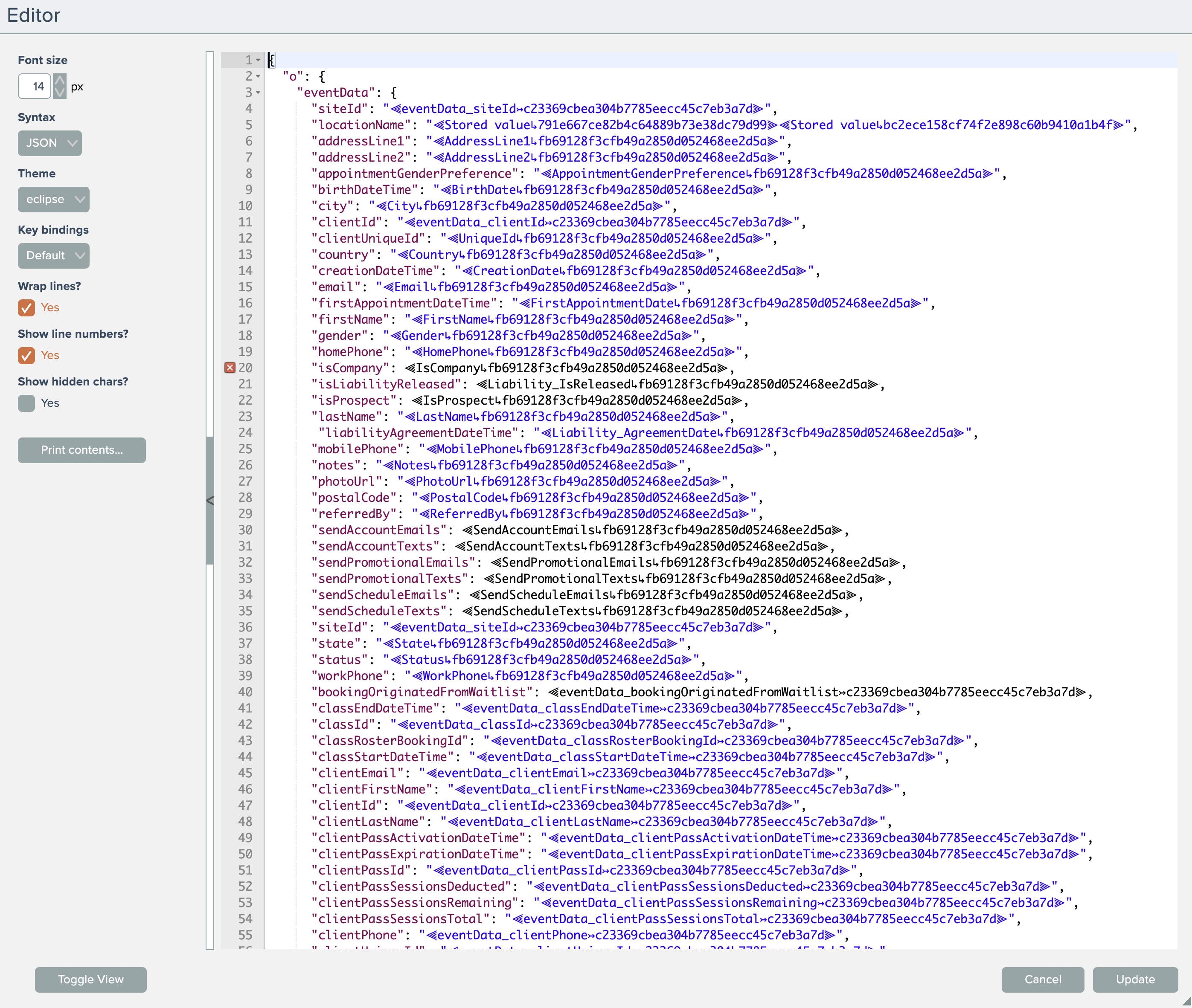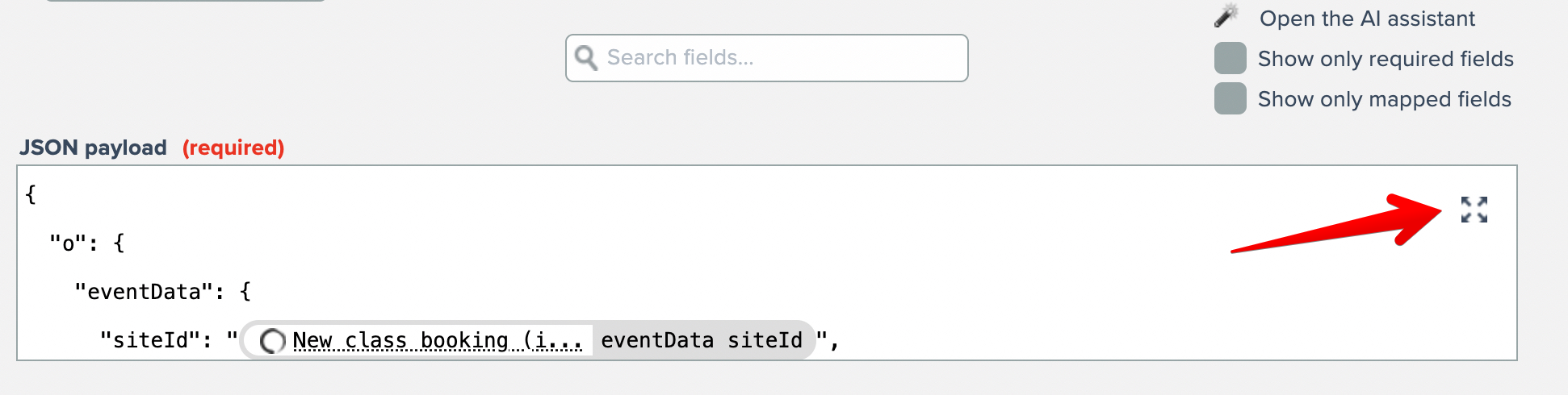 If you need to edit a large amount of text within field mappoing, use the expand icon to open a full-screen editor:
