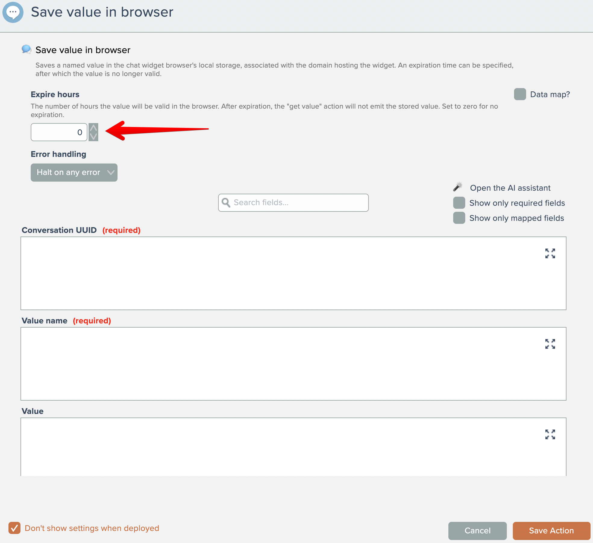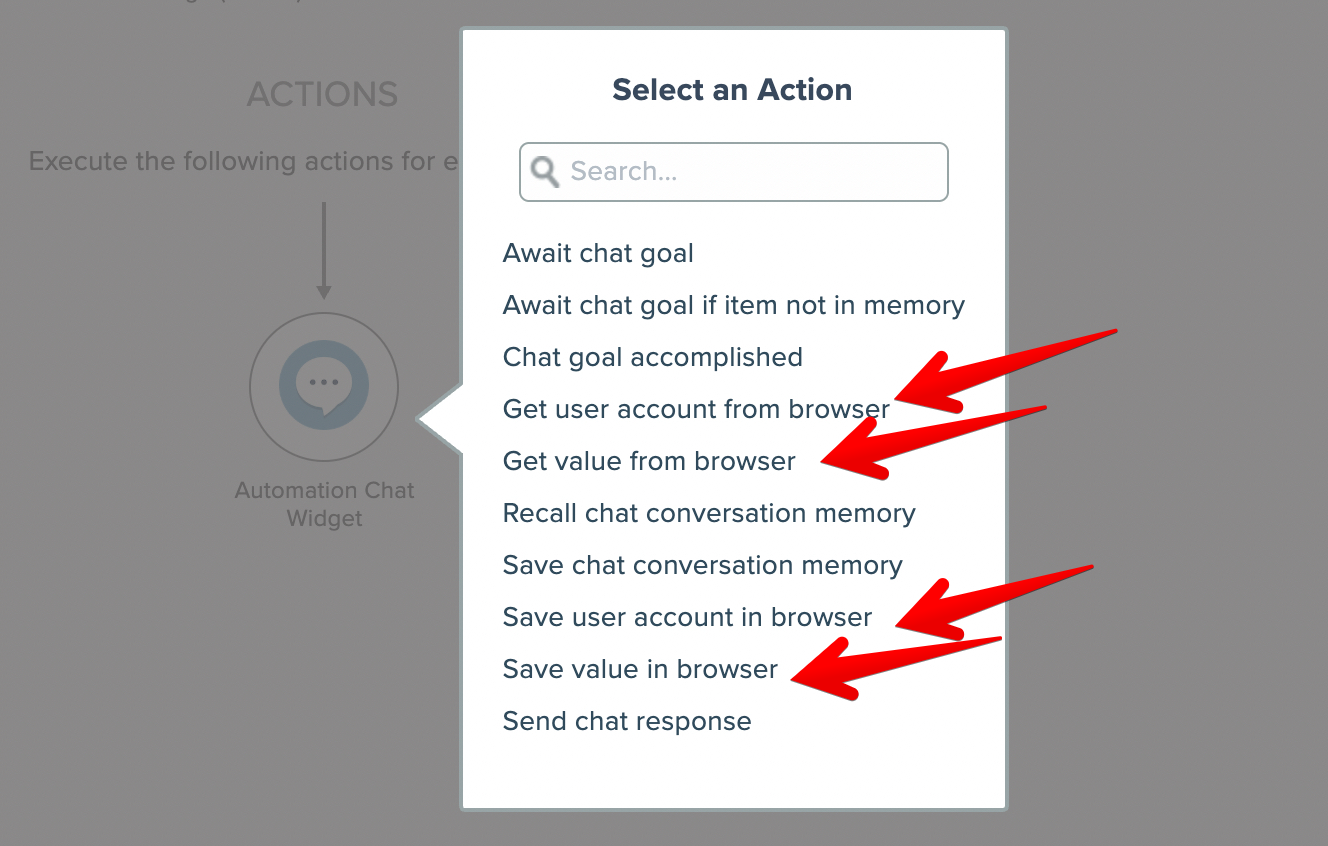The Automation Chat Widget has actions that save and fetch data stored in the chat widget user's browser: