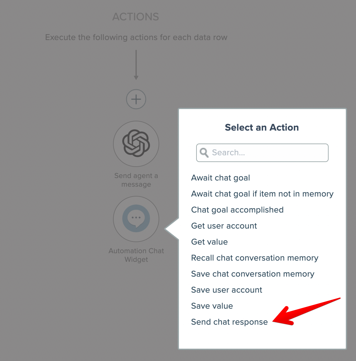 Finally, select the "send chat response" action: