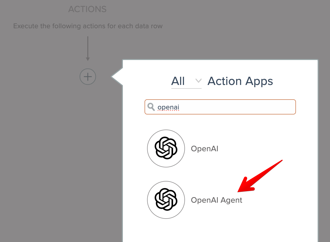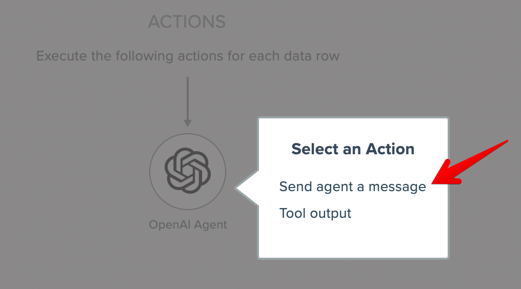 Select "OpenAI Agent". You will need an OpenAI API key from https://platform.openai.com/api-keys to connect to their API, if you have not connected already.