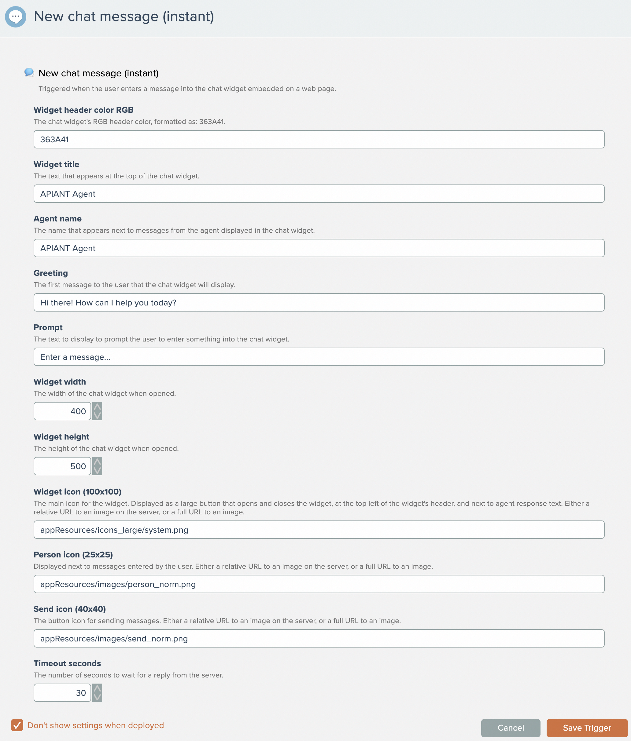 Each time someone enters a chat message, the trigger fires, the AI model generates a response, and the response is sent back to the chat widget.