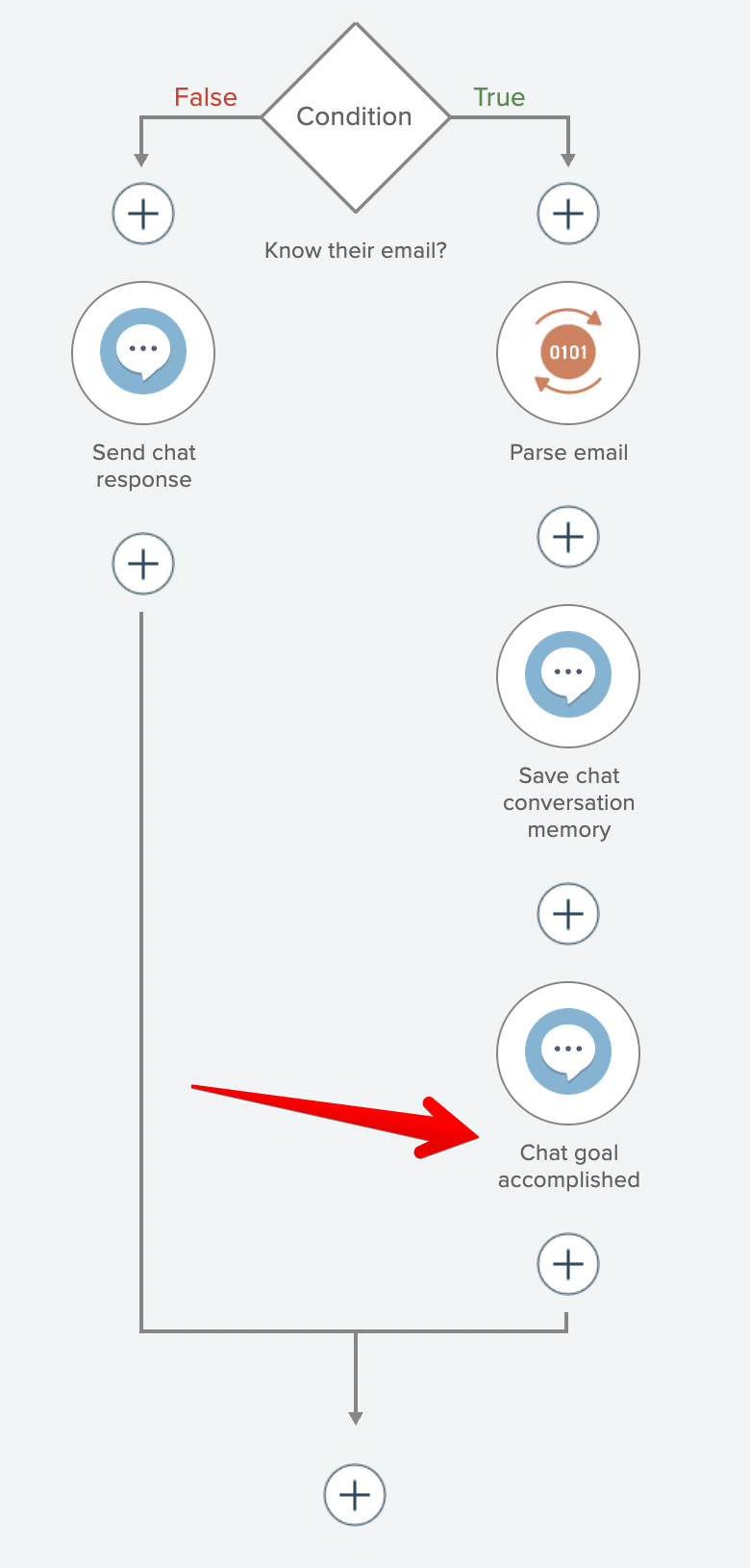 - The goal automation indicates the goal has been accomplished by executing the "chat goal accomplished" action