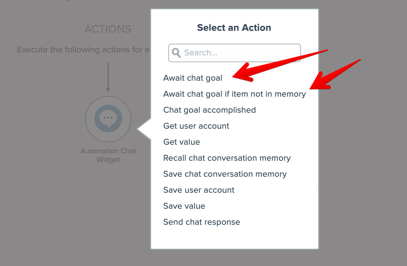Goal automations are executed by either of these Chat Automation Widget actions: