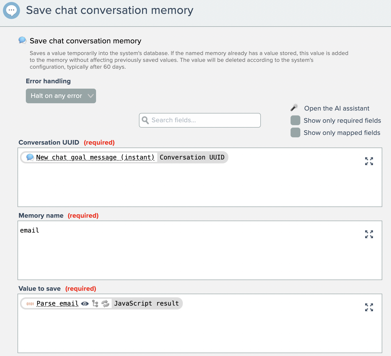 The parsed email is then stored into conversation memory: