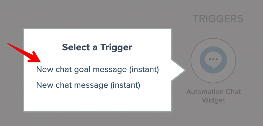 Choose the new chat goal message instant trigger:
