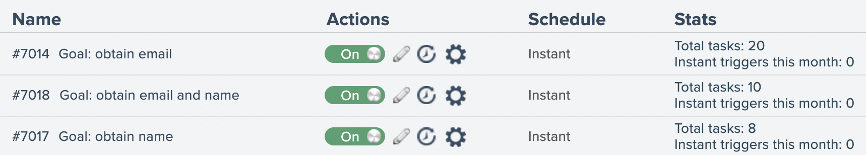 Chatbot goal automations