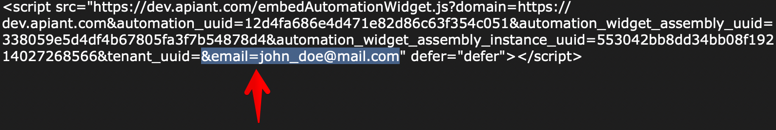 To do this, your server can dynamically append one or more query parameters to the widget’s embed URL when generating the web page: