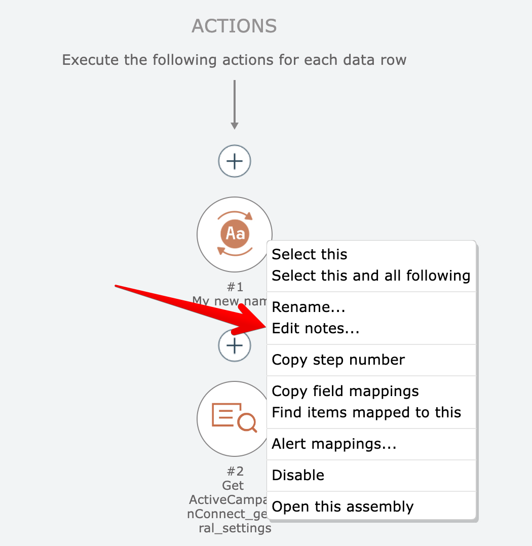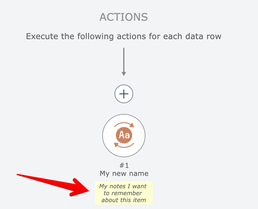Items in an automation diagram can have notes, to help better describe their purpose and functionality.