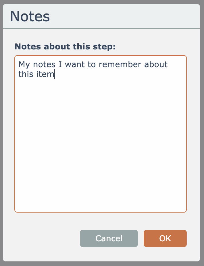 Enter notes about the item and click the OK button: