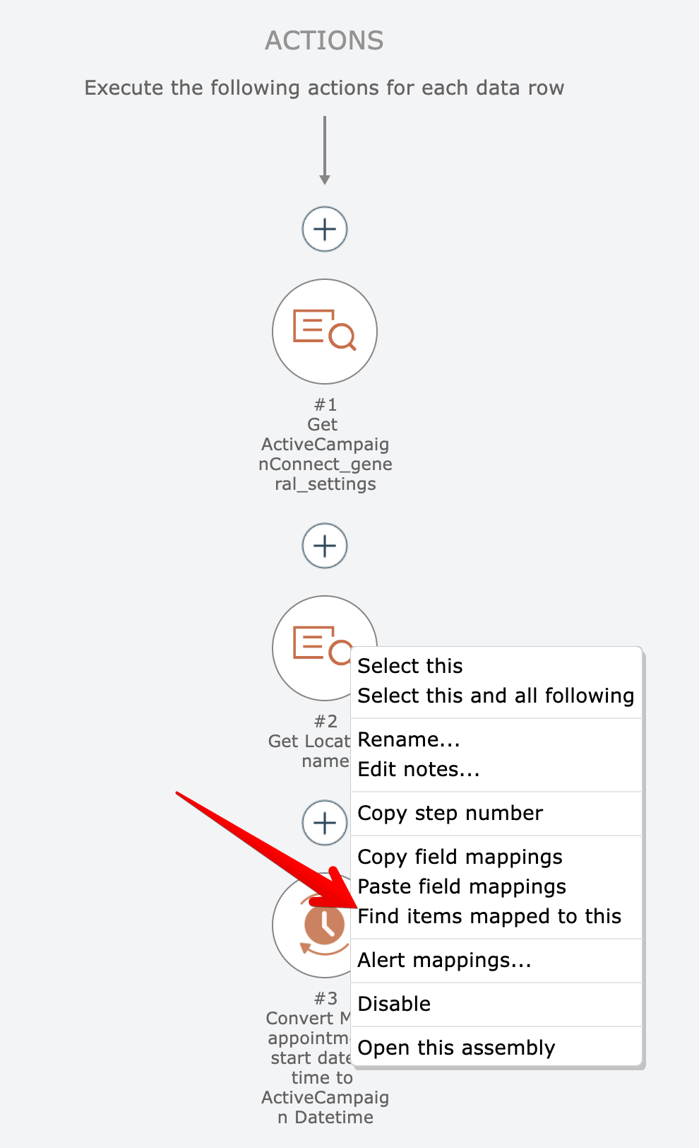 Learn how to easily find all items associated with a specific trigger or action in this comprehensive document. Discover the step-by-step process, including how to use the "find items mapped to this" option, to effortlessly highlight and navigate through