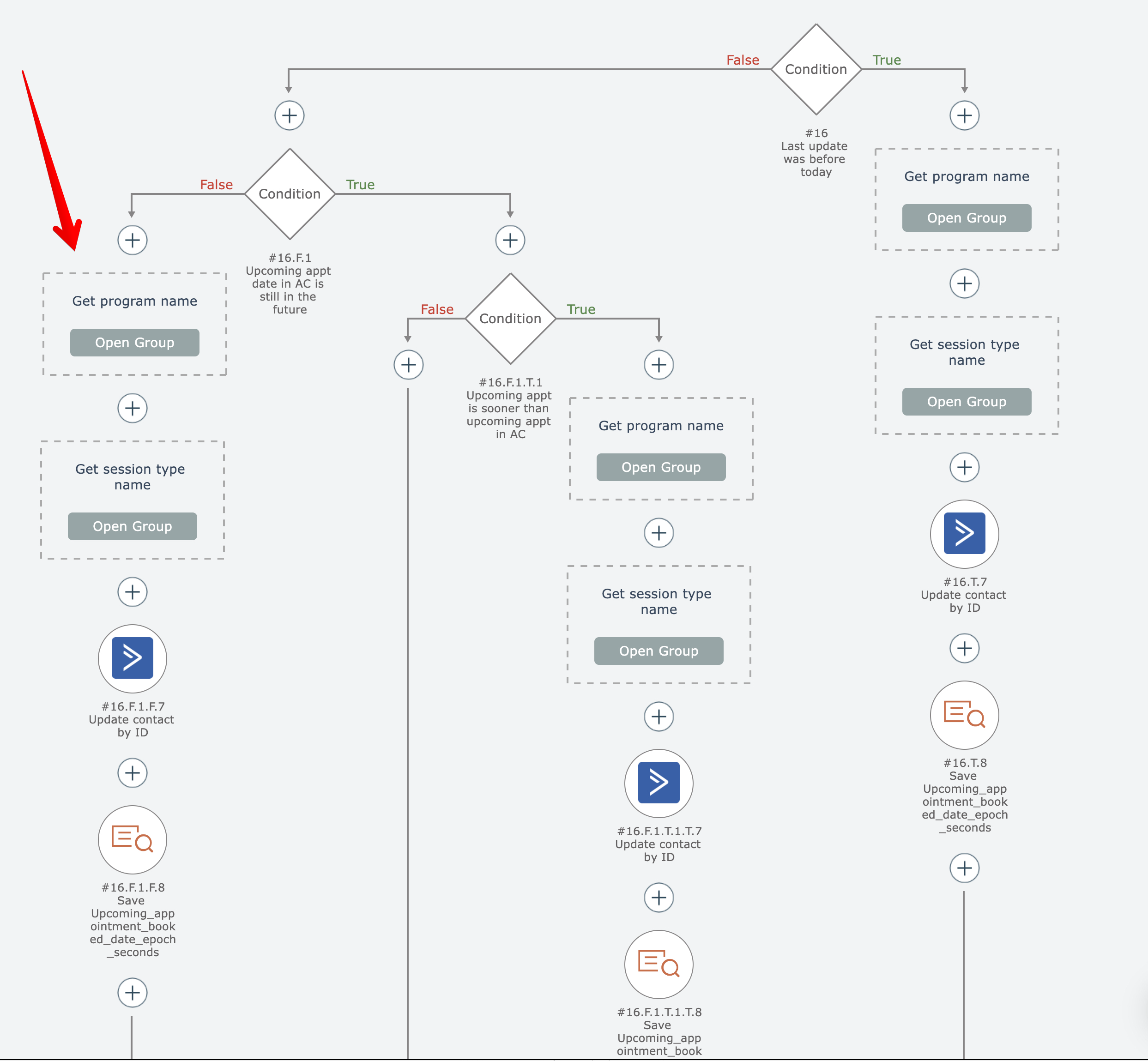 Related actions within an automation diagram can be placed into groups that can be collapsed and expanded.