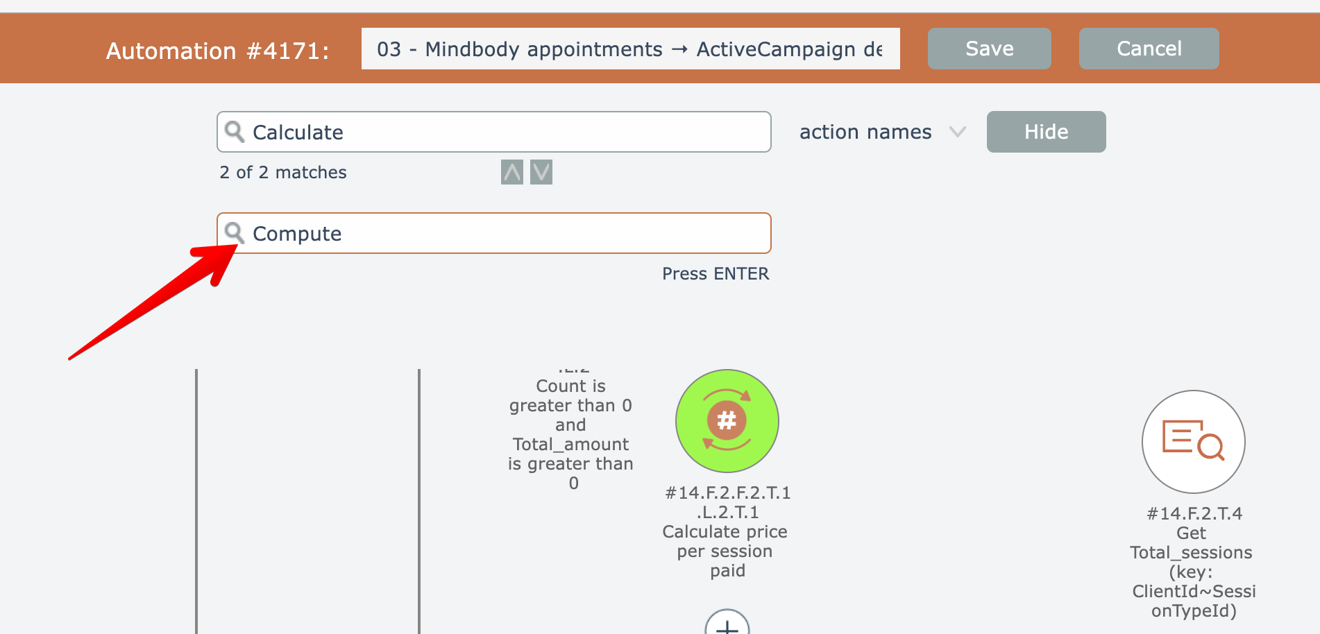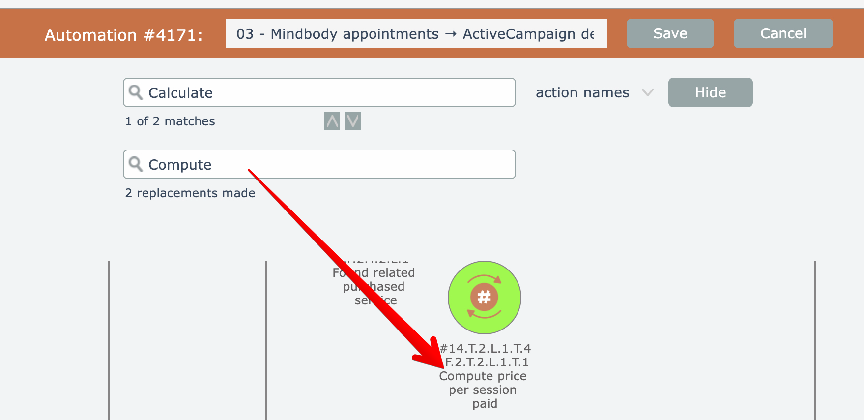 To replace text in one or more action names, first perform a search with the desired text to be replaced. See Search by action name