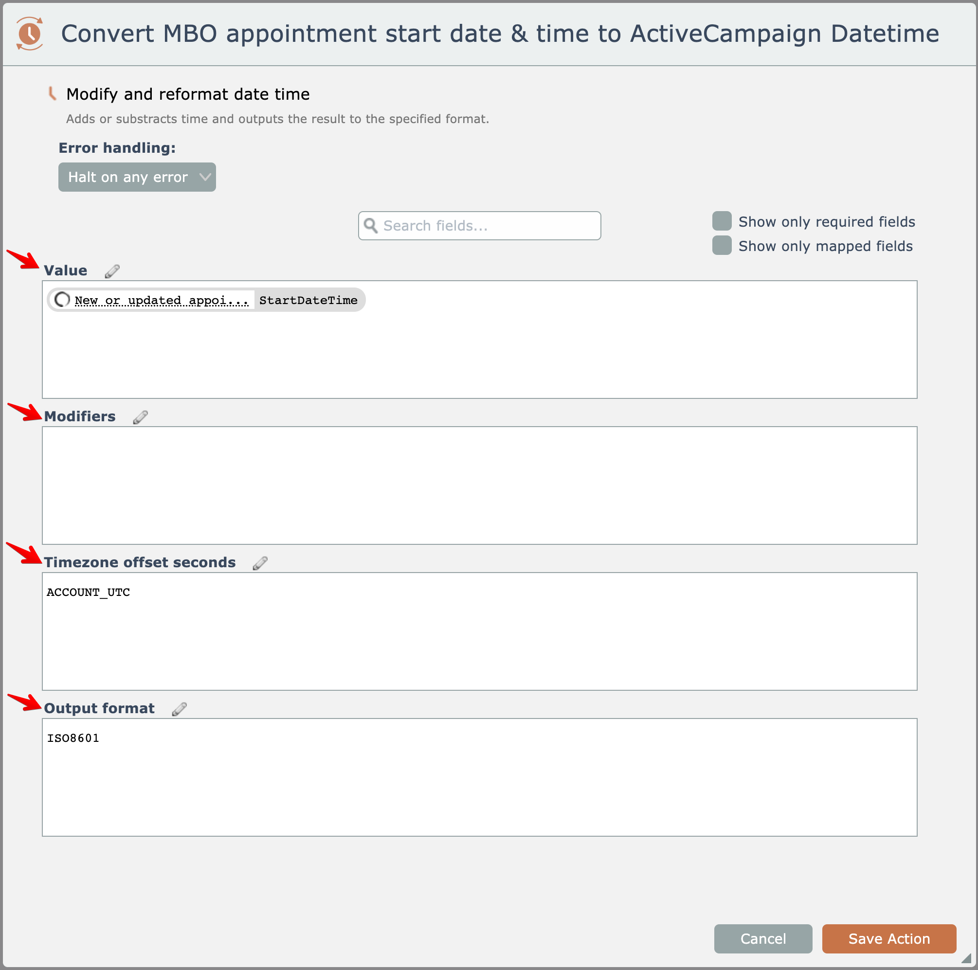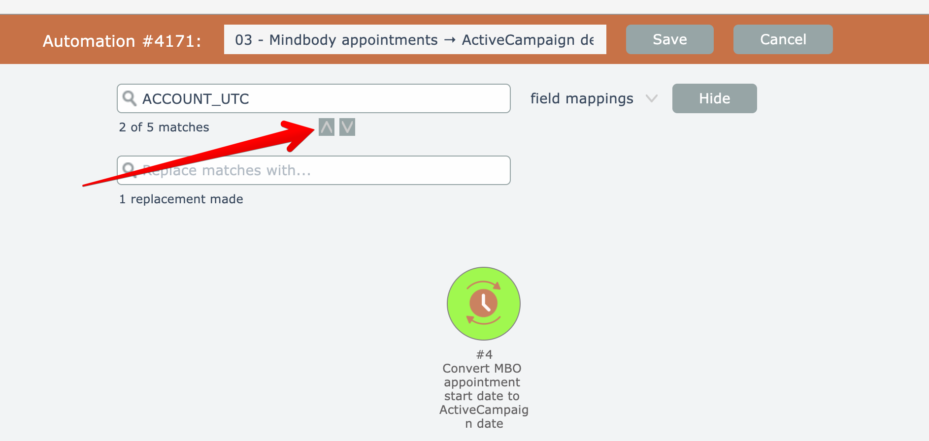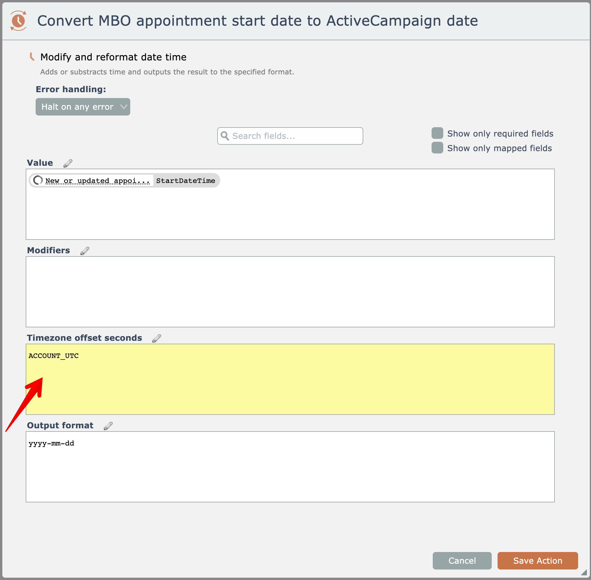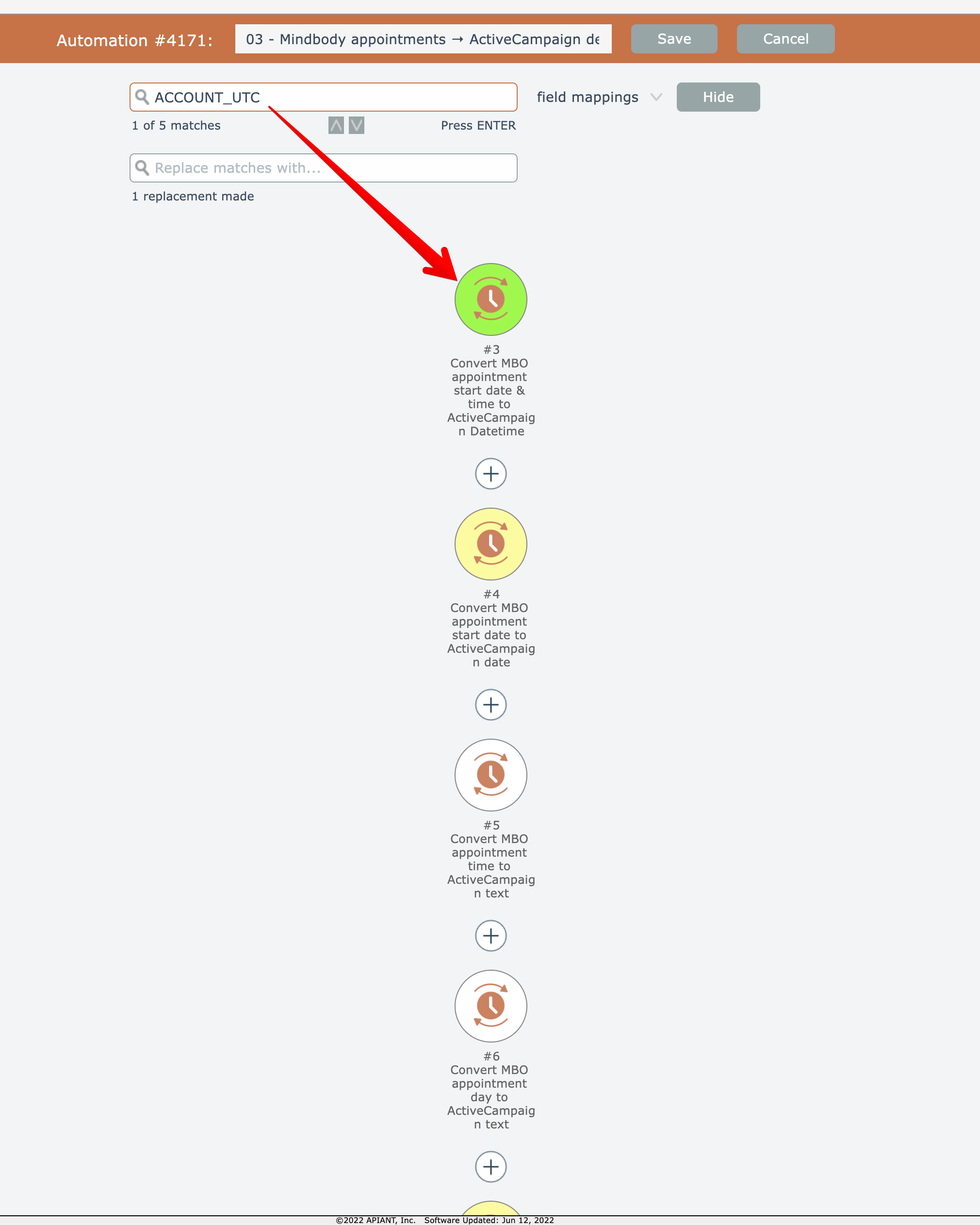 For example, in the action above has a field with a value of "ACCOUNT_UTC". Let's search to find that.