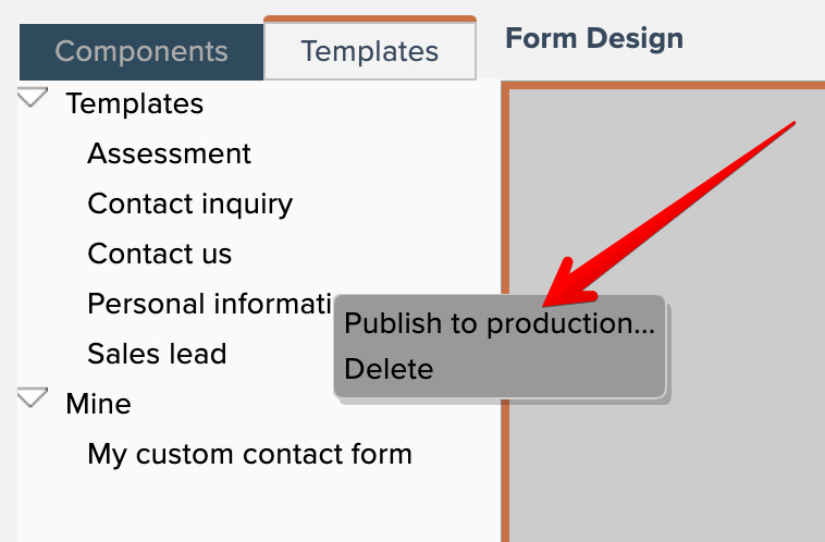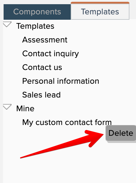 To delete a saved form template, right-click the template in the catalog and choose the Delete option: