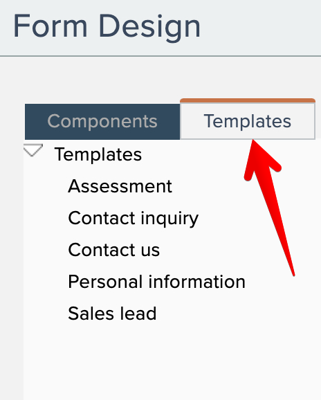 Select the Templates tab at the top left of the designer to view available saved templates: