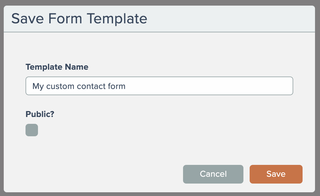 Give your template a name. If your account has permission to save public content, you can also choose to make the template public in the catalog: