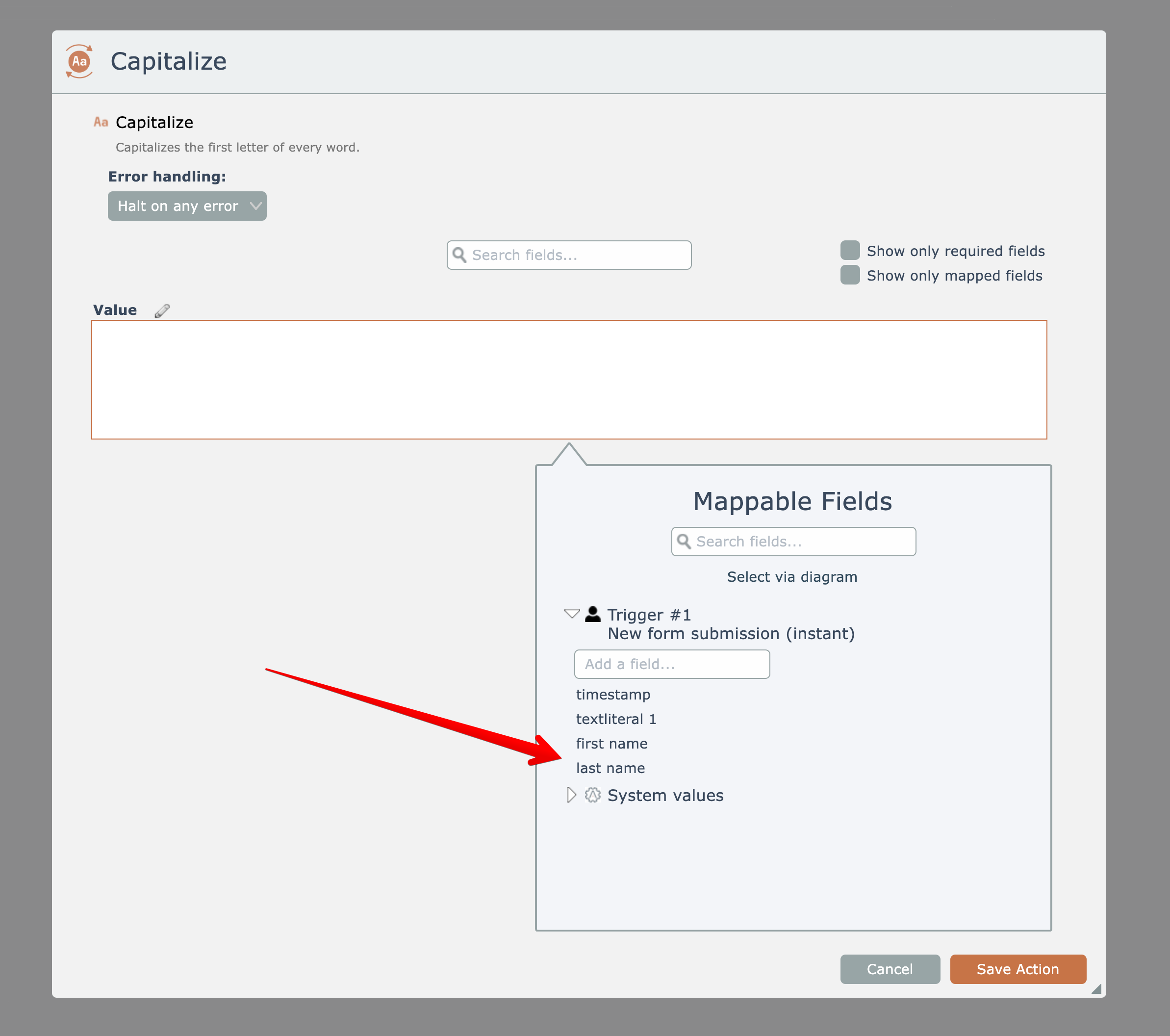 Actions in the automation can process the submitted form fields: