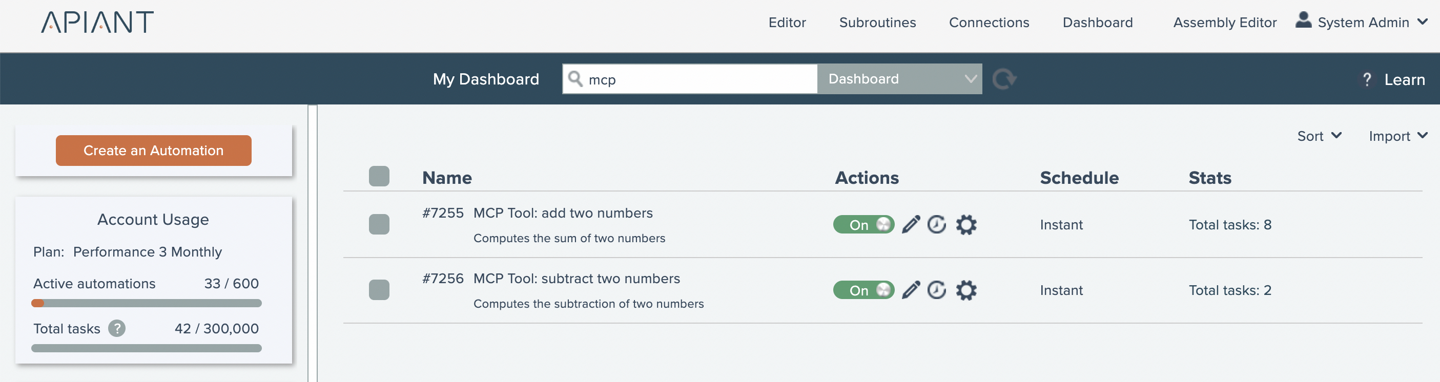 Save the automation and turn it on. Only MCP tool automations that are turned on are made available to MCP clients.