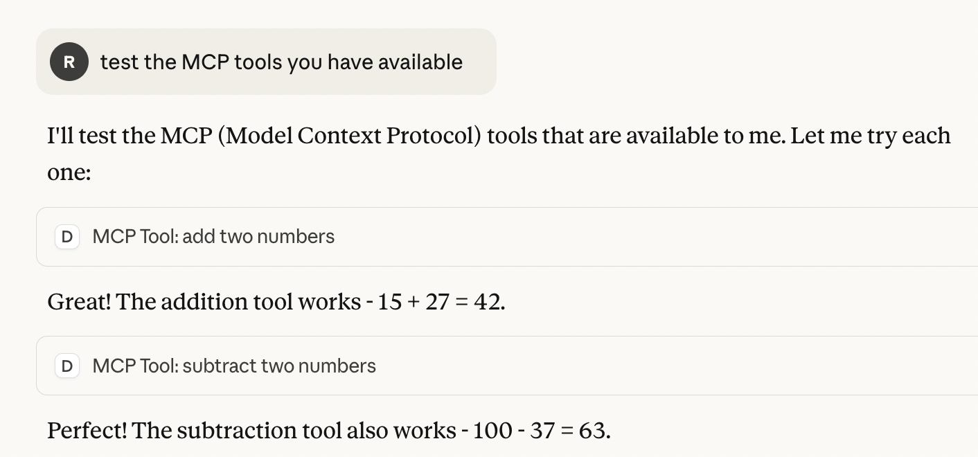 Now you can open a conversation and the AI model will utilize the available tools based on the context of the conversation. Here we ask the AI model to explicitly test them: