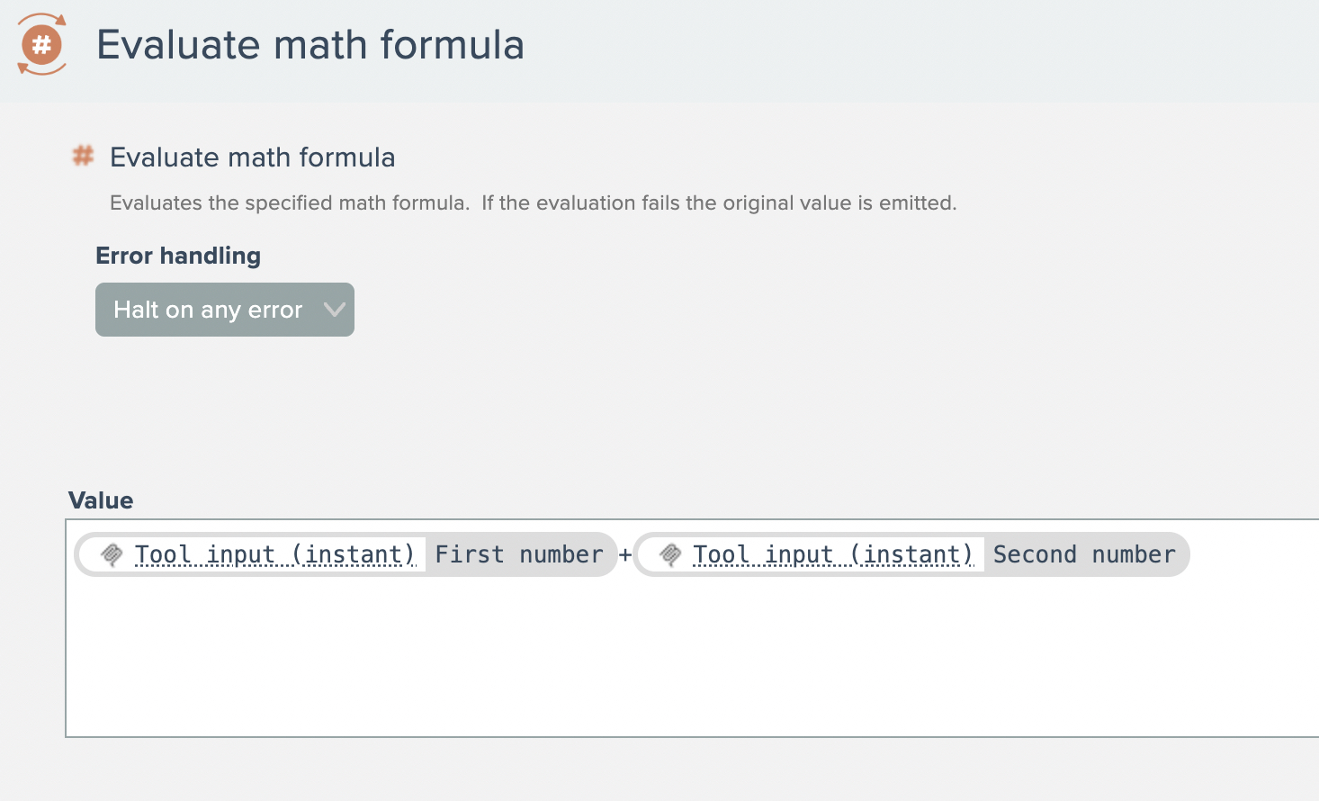 Then add the logic for the tool. For this sample, we'll just add the two input numbers together:
