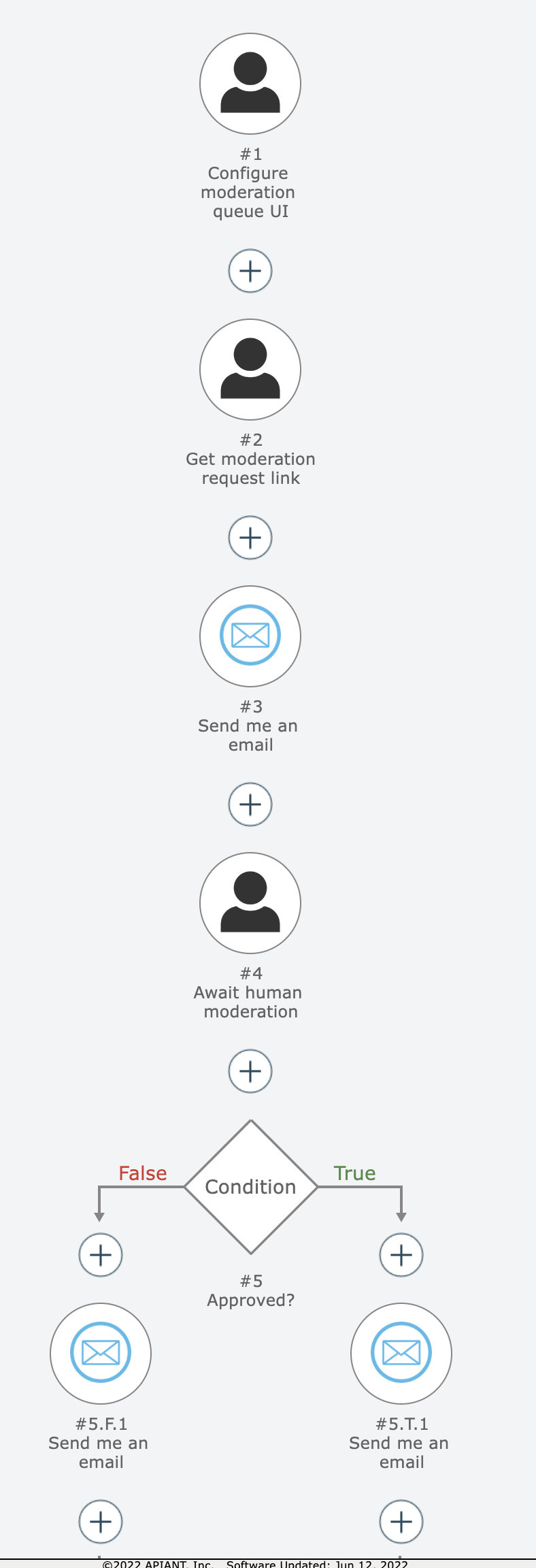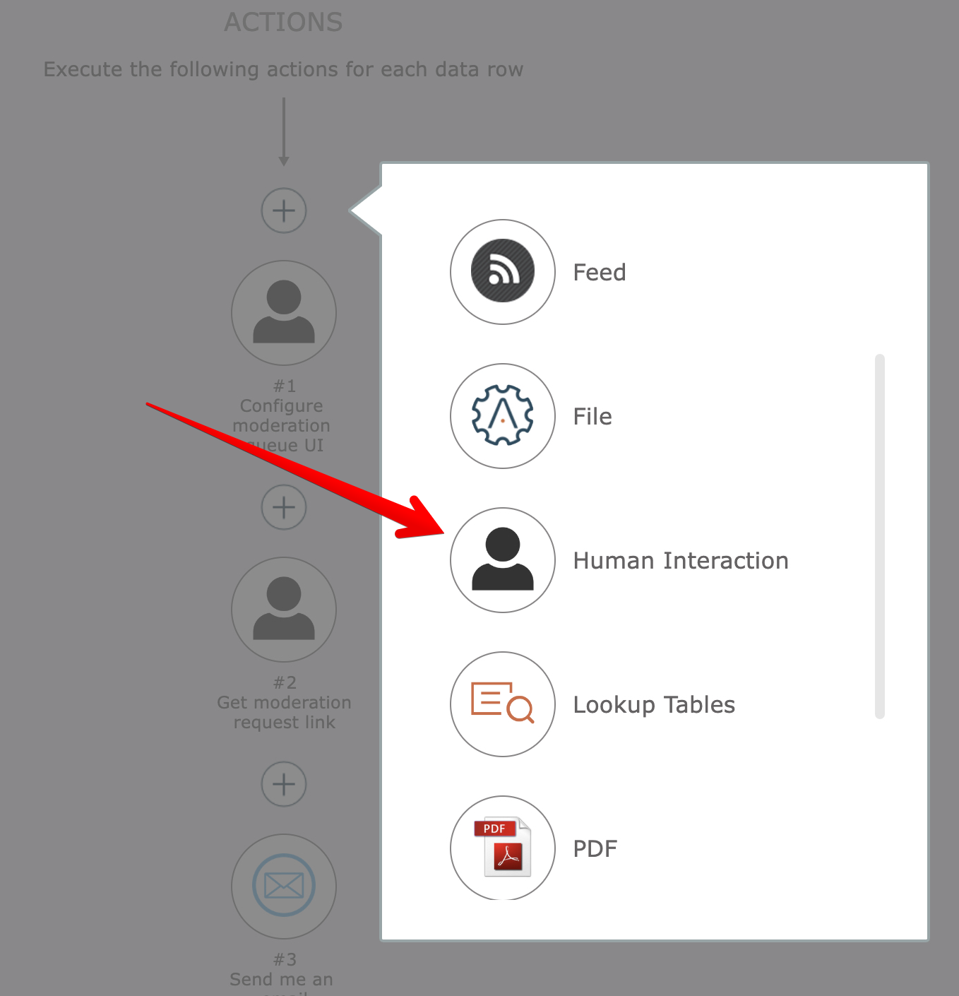 Moderation queues can be used for people in the loop where they receive items that need some type of human action to be performed before the automation continues its processing.