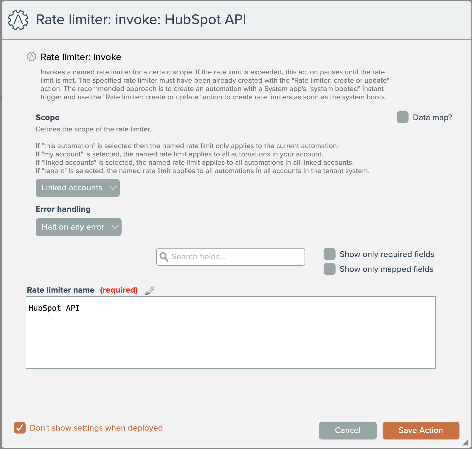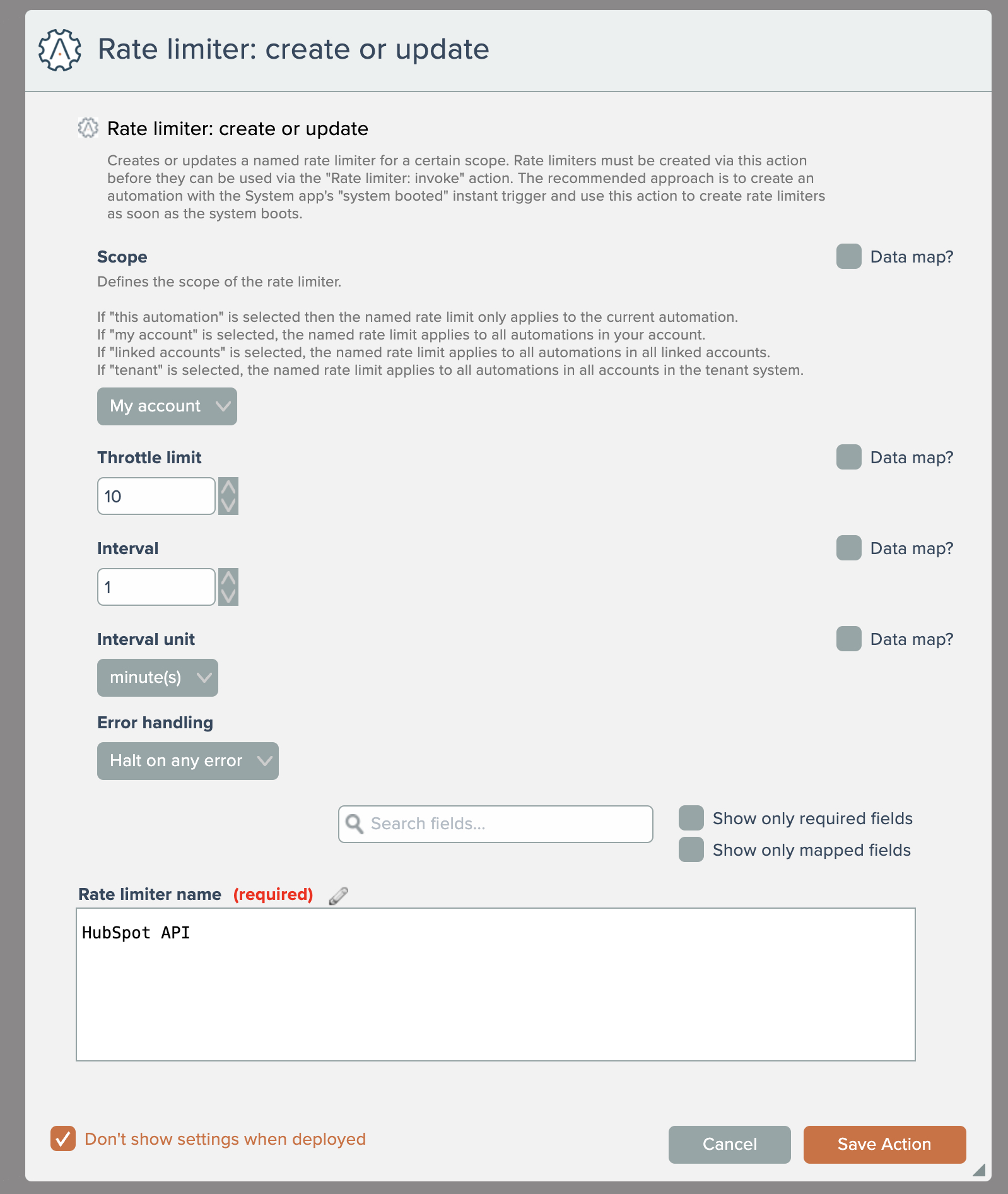 With the rate limiter defined, it can then be used in one or more automations (depending on the configured scope), typically before actions that make API calls: