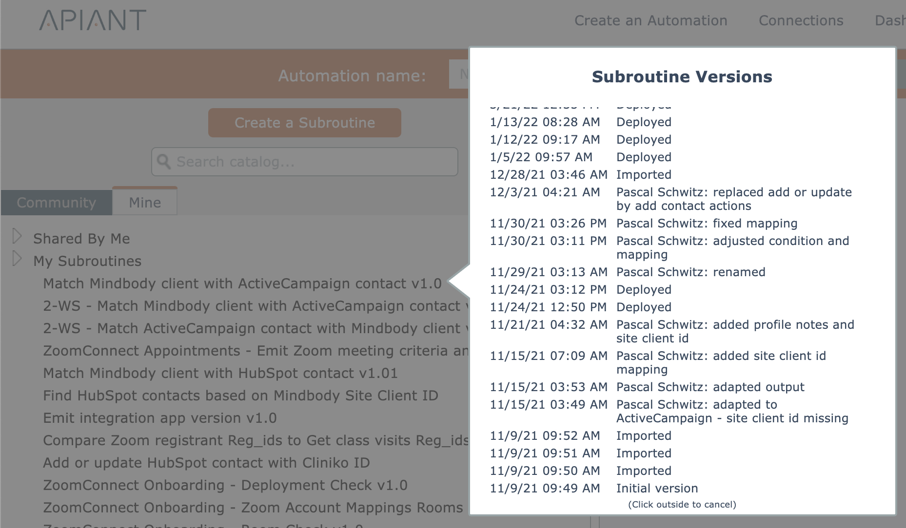 Learn how to easily access and manage different versions of a subroutine in the catalog. Simply right-click on the subroutine, select "versions," and instantly view and modify any saved version from the convenient list.