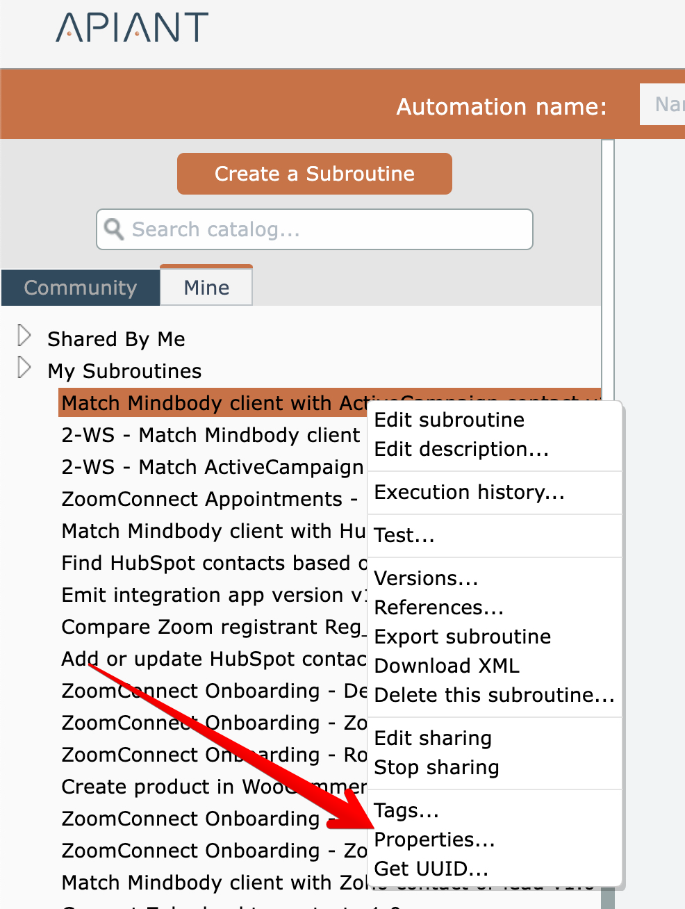 To view a subroutine's created and last edited dates, right-click on the subroutine and choose the Properties option: